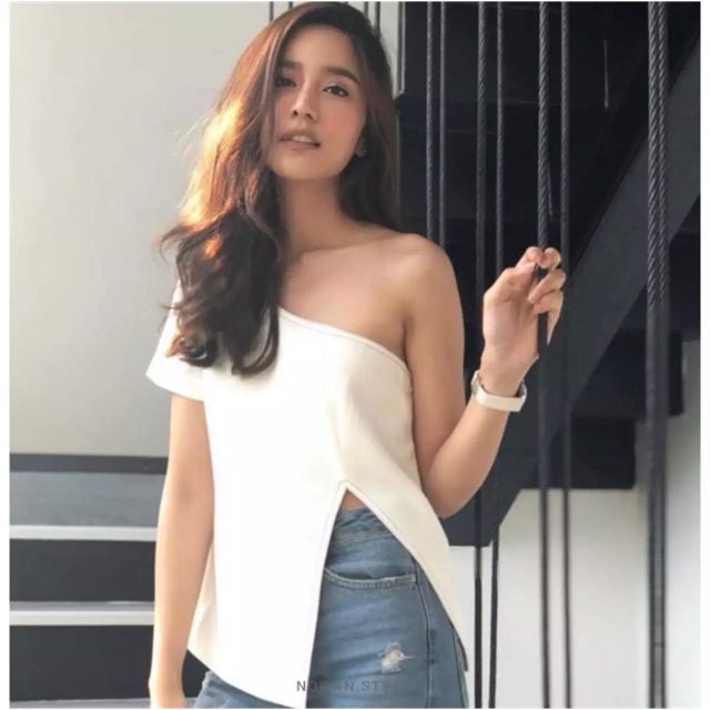 [Used Like New] Nowan Style Cleave Top เสื้อปาดไหล่ เสื้อแขนเดียวสีขาว