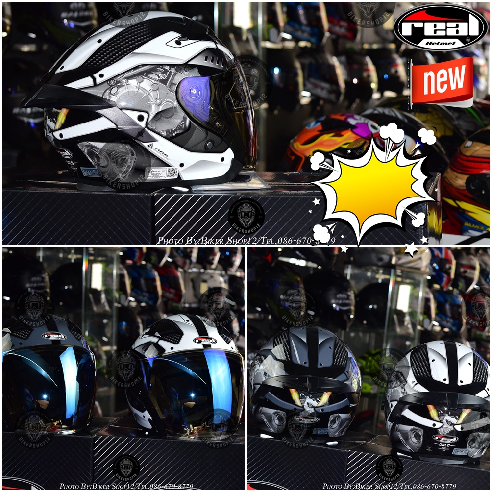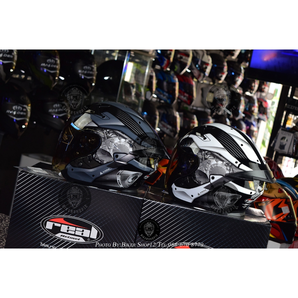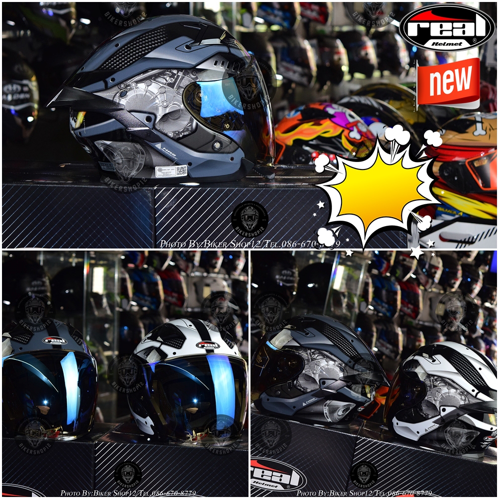 หมวกกันน็อคReal รุ่น Oslo ลาย mecanica✔ มีแว่นพับซ่อนได้!!!