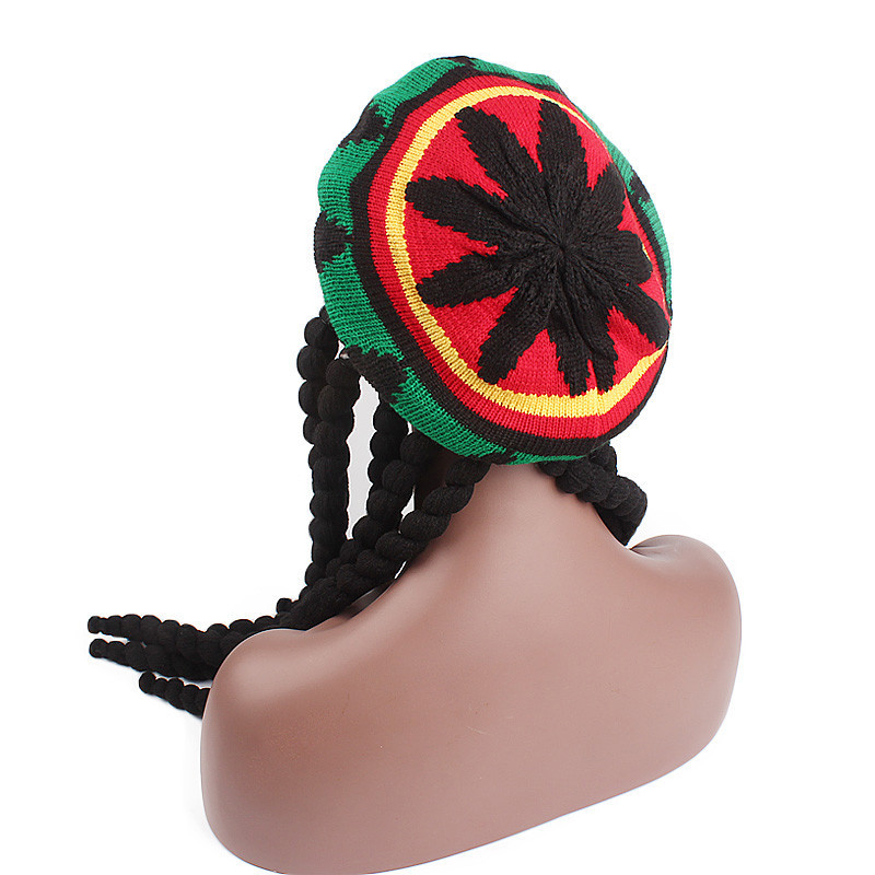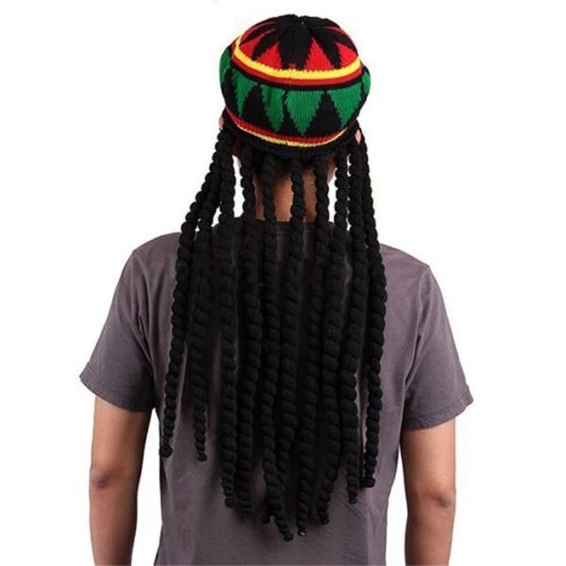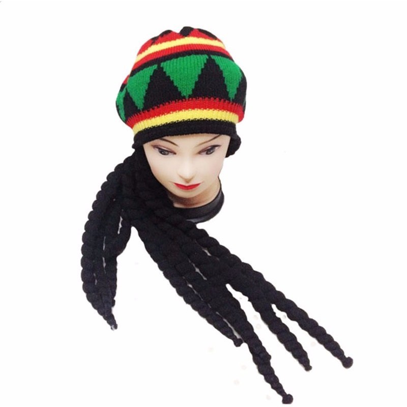 YNew Unisex Knitted Braid Hat Jamaican Bob Rasta Beanie Hats Hip Hop Cap Dreadlocks Wig Bob Marley Caribbean Fancy Dress
