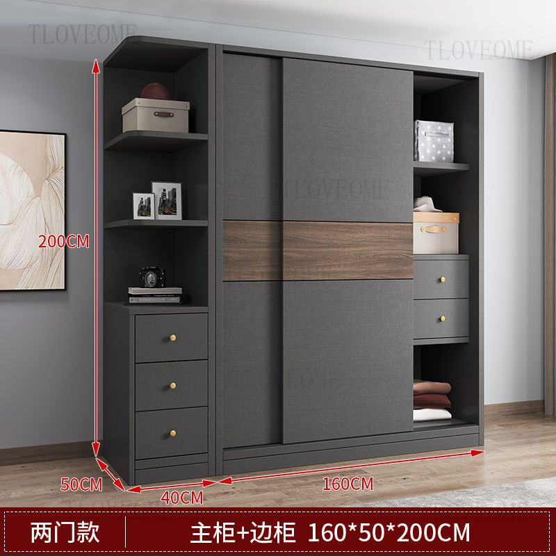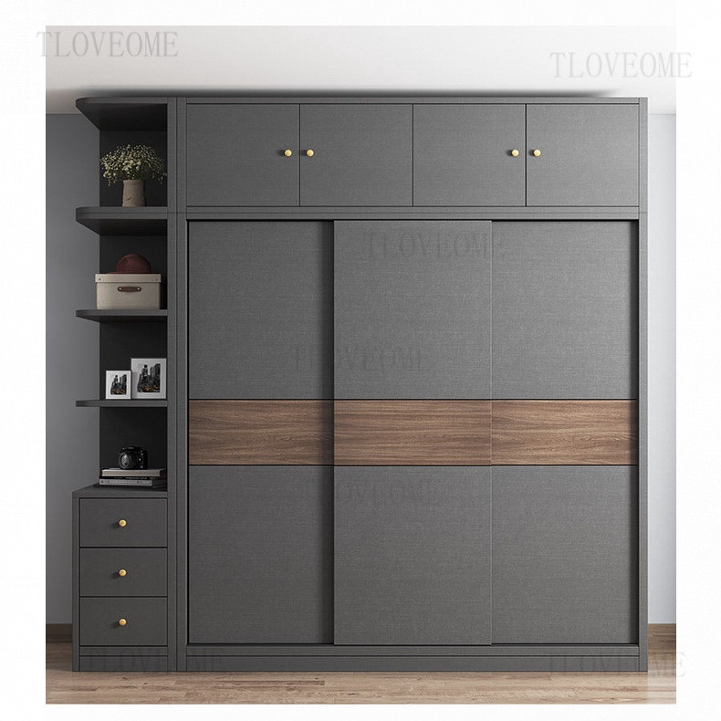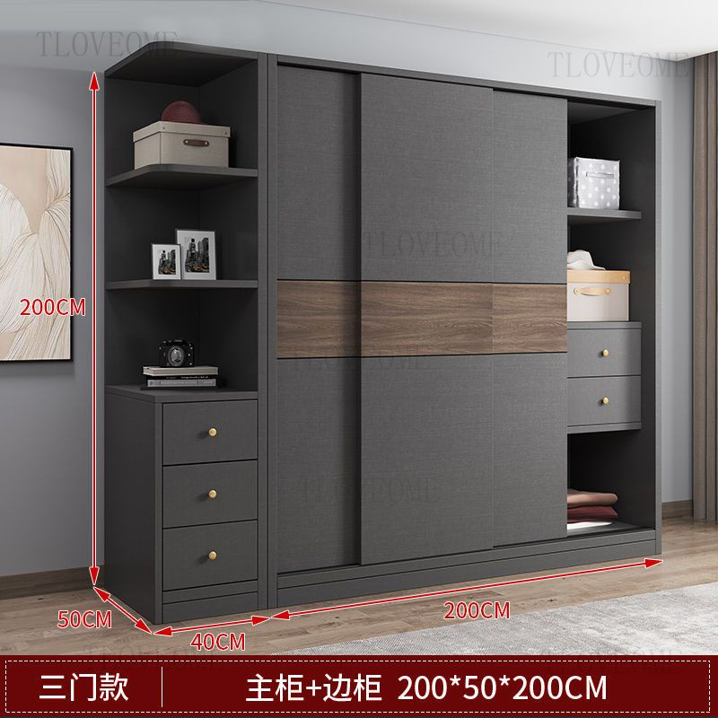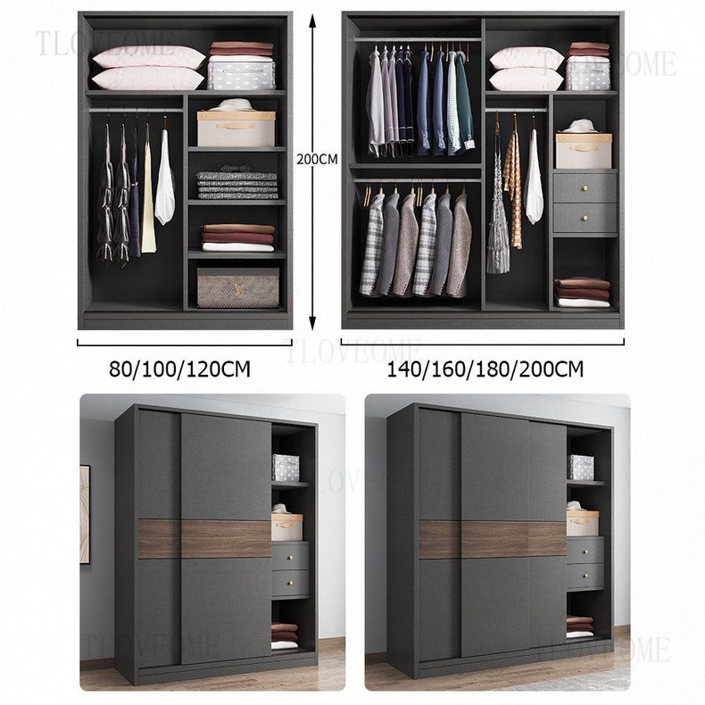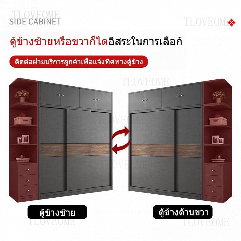 TLOVE ตู้เก็บของในครัวเรือน ตู้เสื้อผ้าขนาดใหญ่ ลิ้นชัก ประตูบานเลื่อนไม้