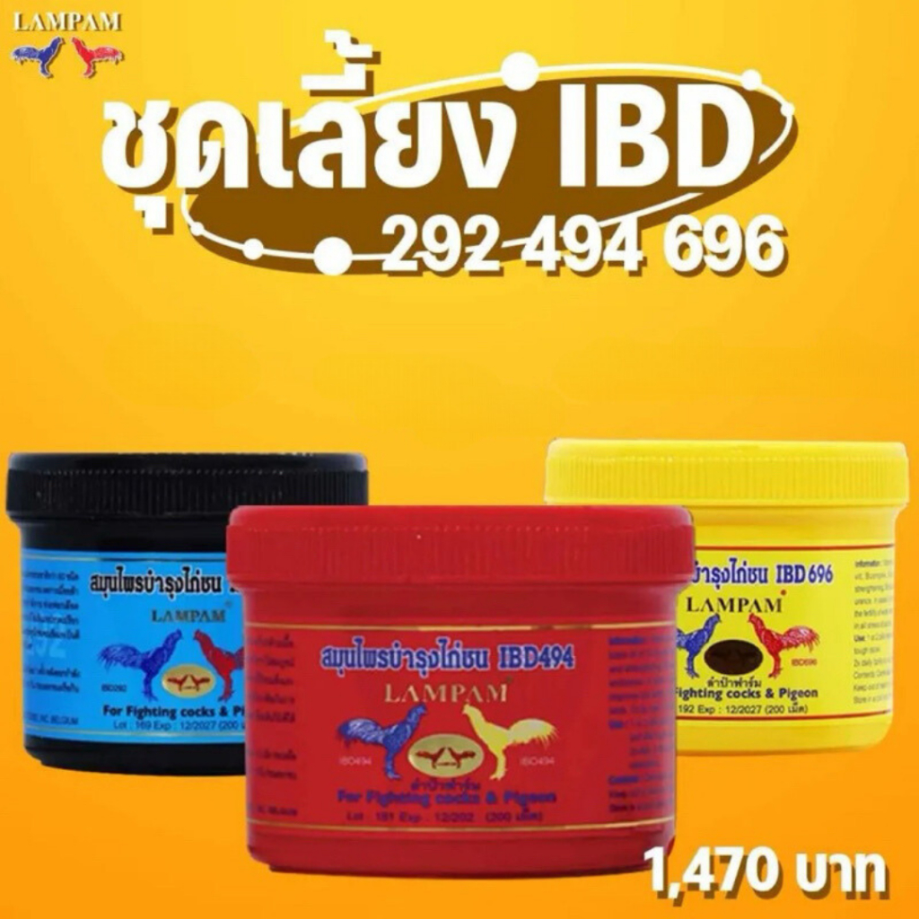 ชุดเลี้ยงไก่ไอบีดี IBD แบบกระปุก 200 เม็ด ชุดเลี้ยงไก่ลำปำ อาหารไก่ชน กำลังไก่