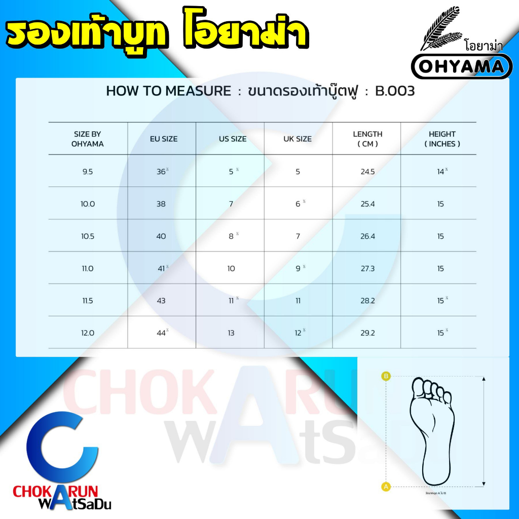 Ohyama รองเท้าบูท รุ่น B003 สูง 15 นิ้ว - รองเท้าบูทโฮยาม่า บูทลงนา กันน้ำ รองบูทโอยาม่า