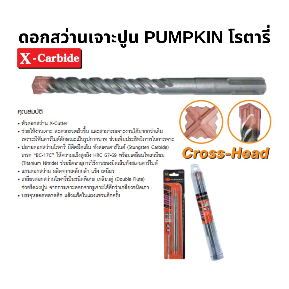 Pumpkin ดอกสว่านเจาะปูน ก้านโรตารี่ - พัมคิน หัว X (Cross-Head) ดอกสว่าน เจาะปูน