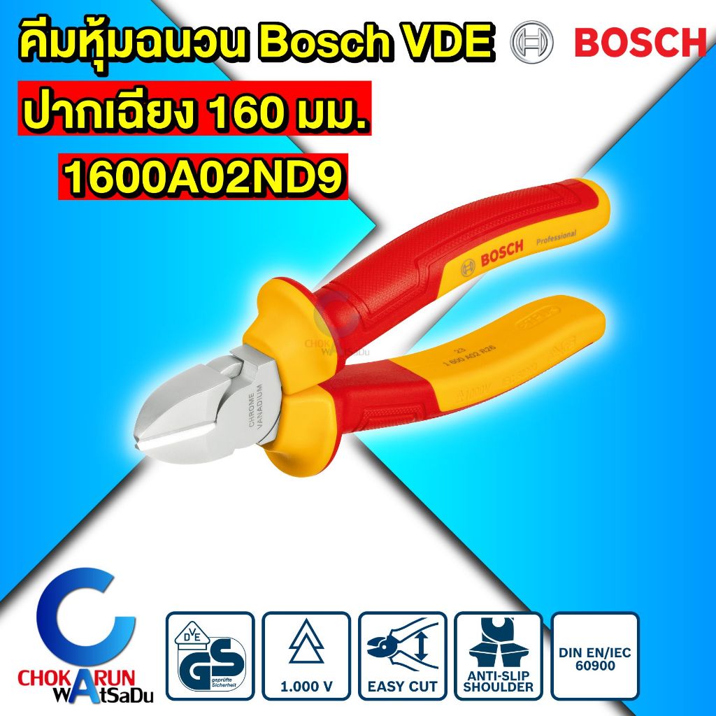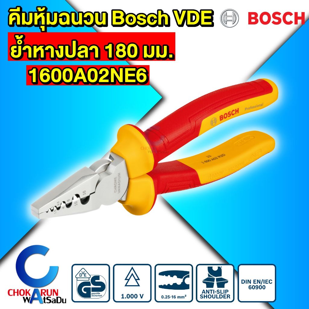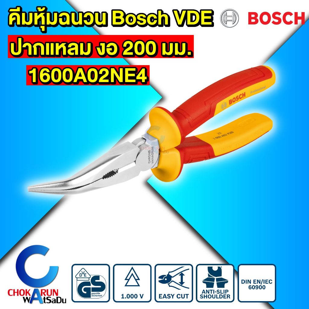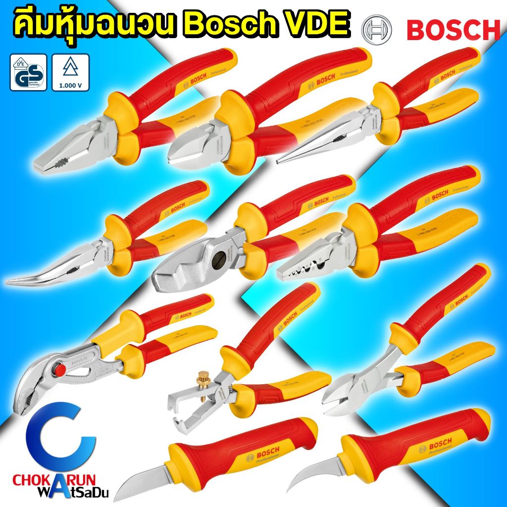 Bosch คีม หุ้มฉนวน VDE กันไฟฟ้า 1000V ปากแหลม ปากจิ้งจก ปากเฉียง ปอกสาย ย้ำหางปลา คอม้า