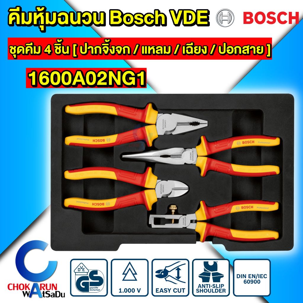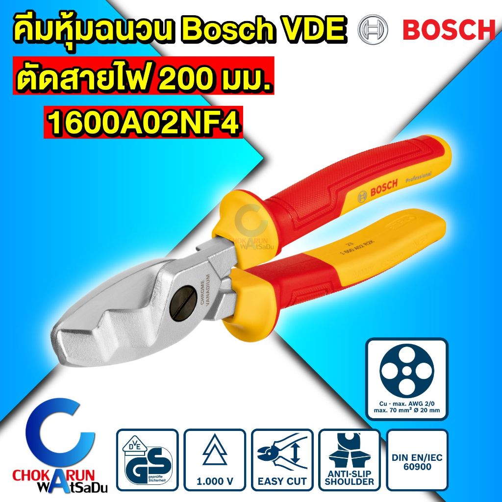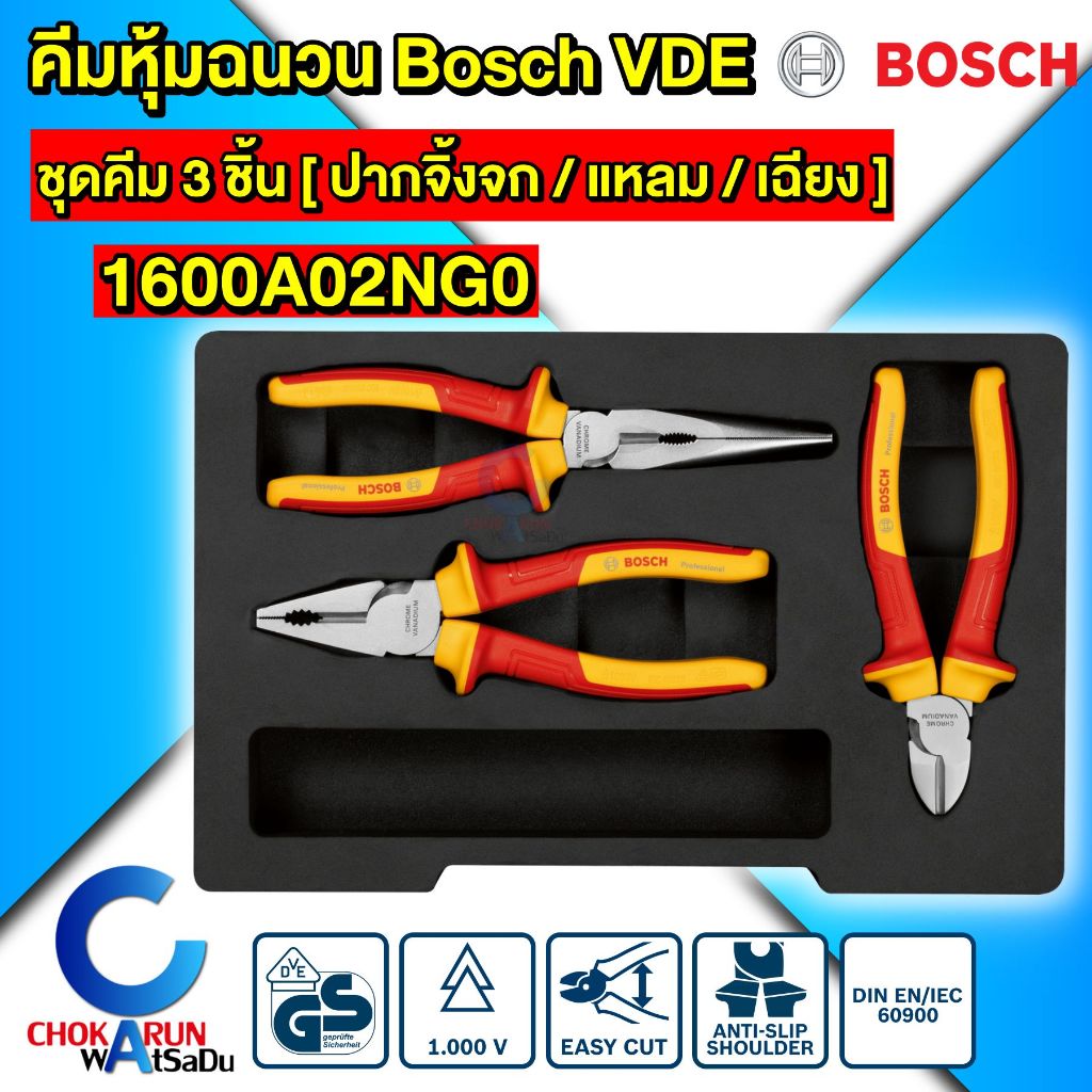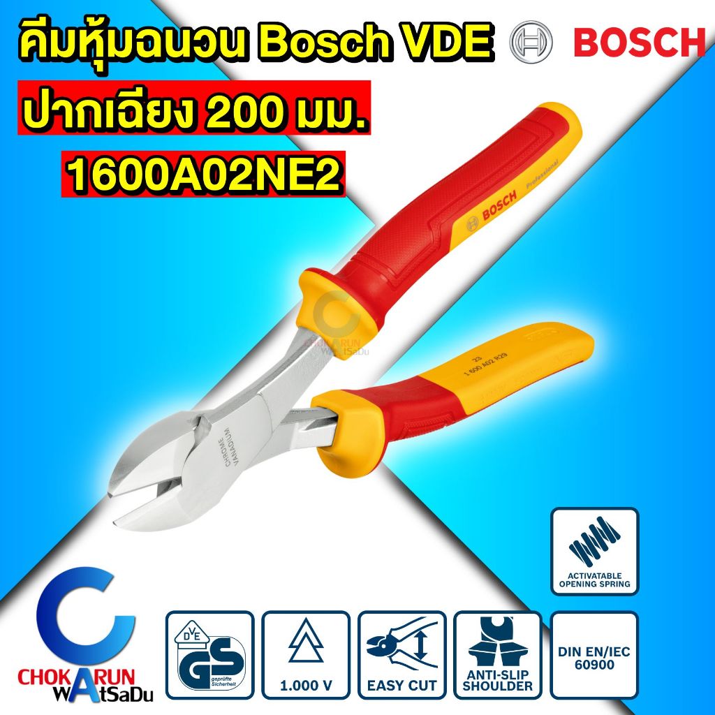 Bosch คีม หุ้มฉนวน VDE กันไฟฟ้า 1000V ปากแหลม ปากจิ้งจก ปากเฉียง ปอกสาย ย้ำหางปลา คอม้า