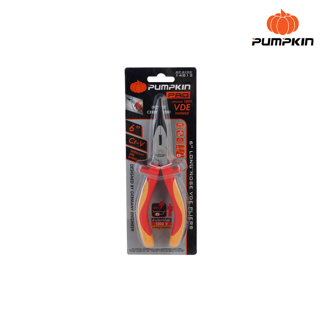 Pumpkin คีมหุ้มฉนวน VDE กันไฟฟ้า 1000V คีมปากแหลม ปากจิ้งจก ปากเฉียง ตัดสาย คอม้า