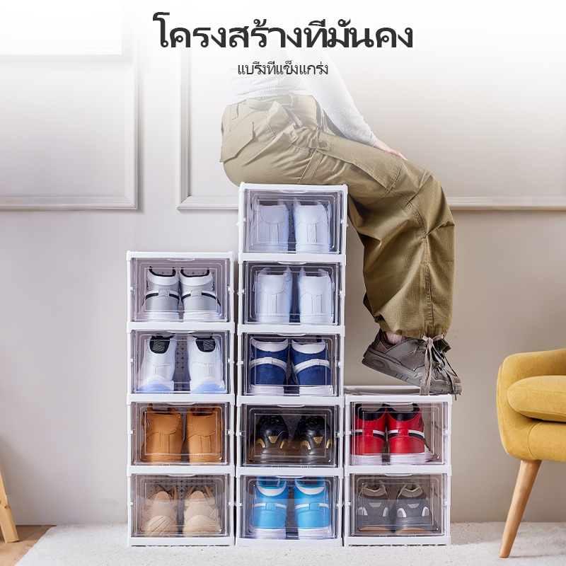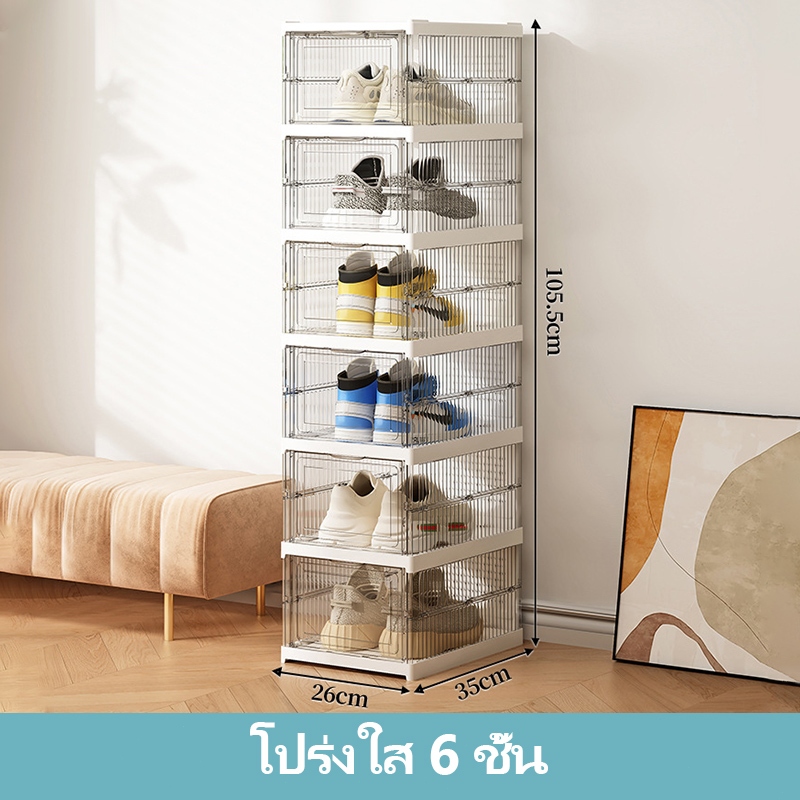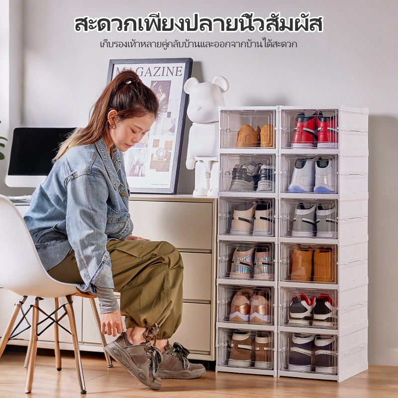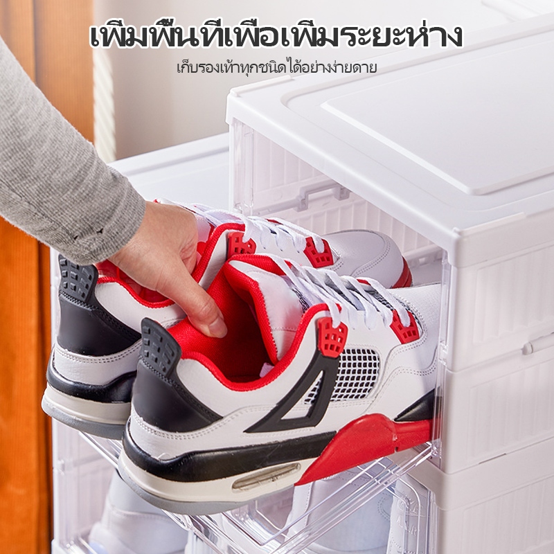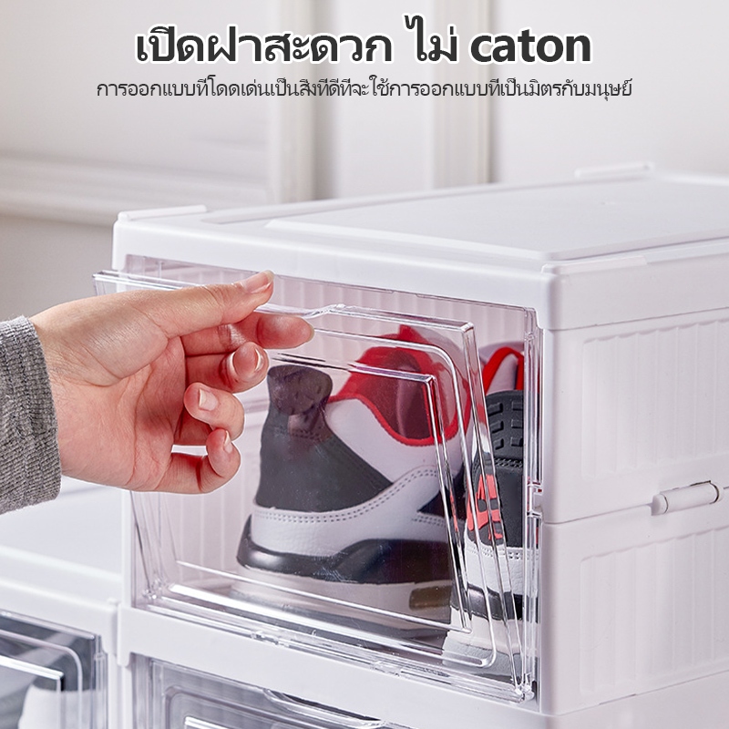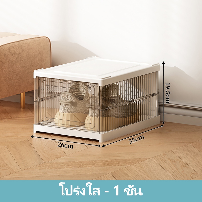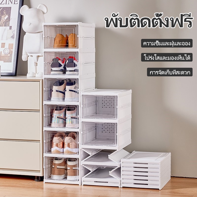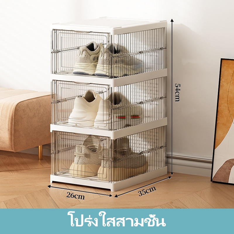 CODชั้นวางรองเท้าพลาสติกพับได้ กล่องเก็บรองเท้าในครัวเรือน ตู้รองเท้าใส เคลื่อนย้ายได้