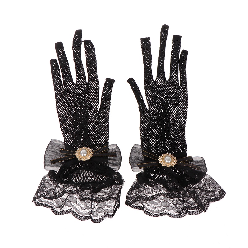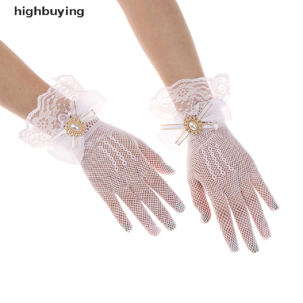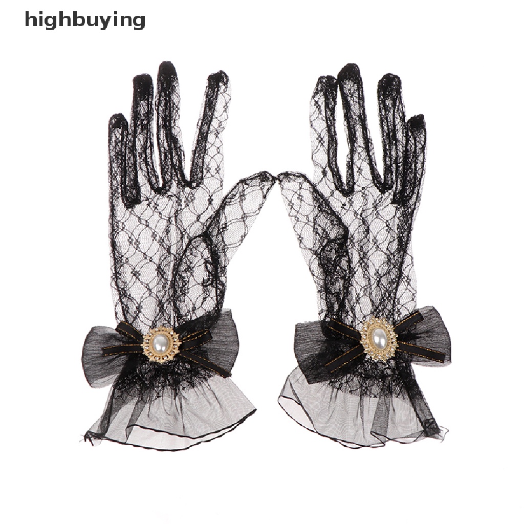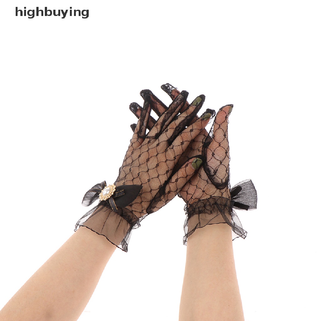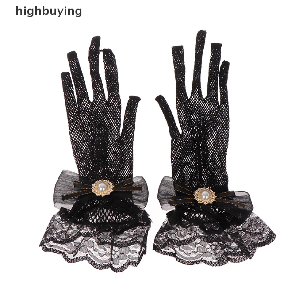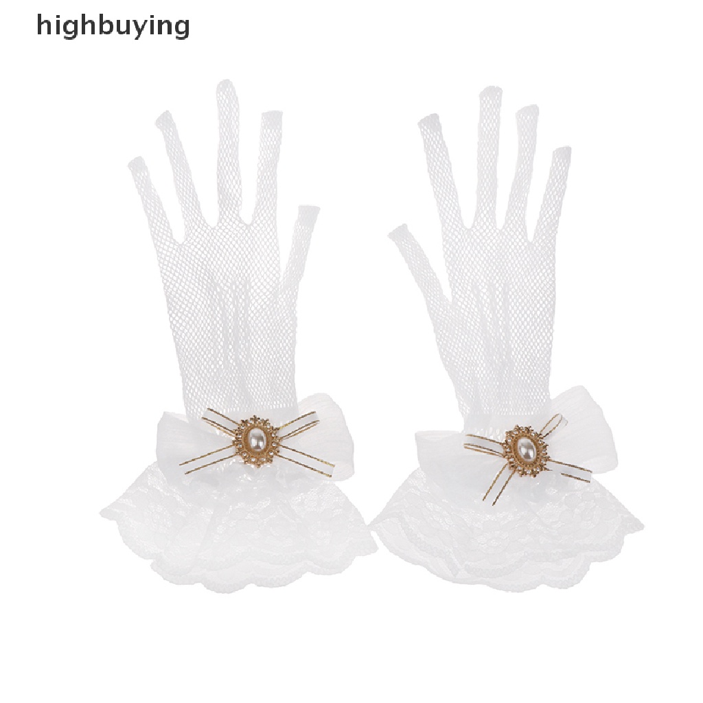 [highbuying] ถุงมือลูกไม้ ตาข่าย โบ ดอกไม้ โลลิต้า สีดํา สีขาว ฤดูร้อน สําหรับเด็กผู้หญิง สินค้าใหม่