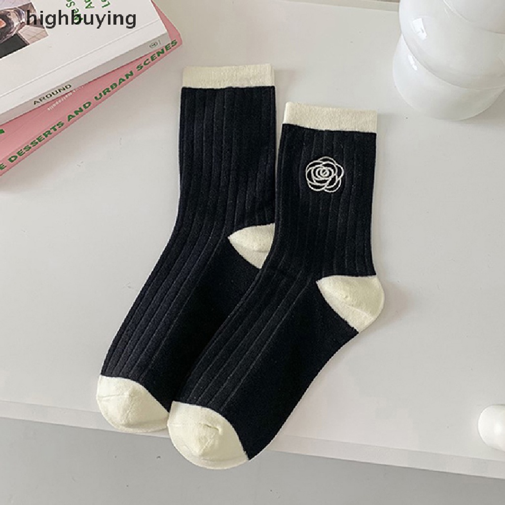 [highbuying] ถุงเท้าผ้าฝ้าย ระบายอากาศ สไตล์เกาหลี โลลิต้า คามิเลีย หวานแหวว ฤดูใบไม้ร่วง สําหรับผู้หญิง นักเรียน พร้อมส่ง