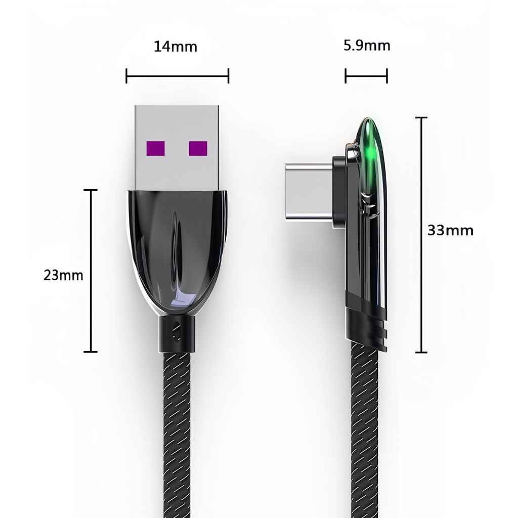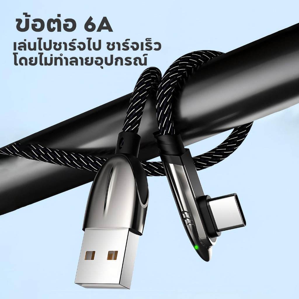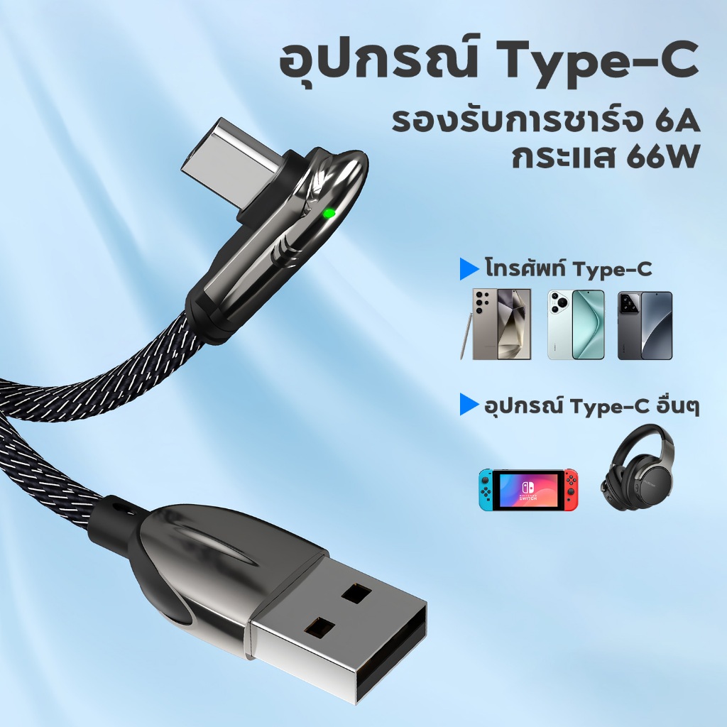 สายเคเบิลมุมขวา USB C ชาร์จเร็ว 6A Type C สำหรับการชาร์จที่รวดเร็ว สายชาร์จ USB A ถึง USB-C แบบถักไนลอนที่ทนทาน