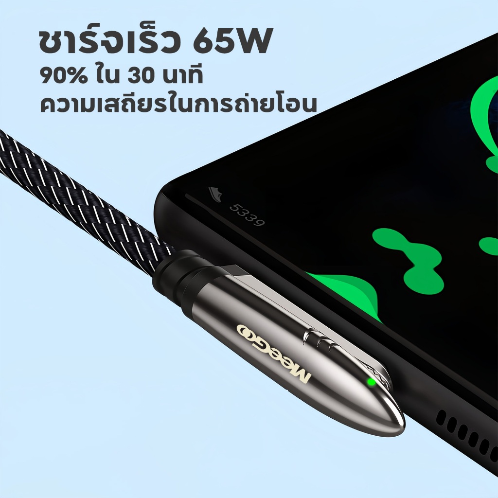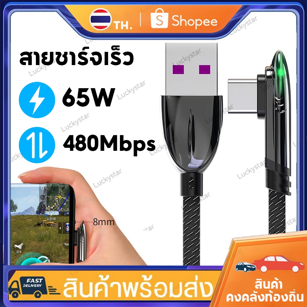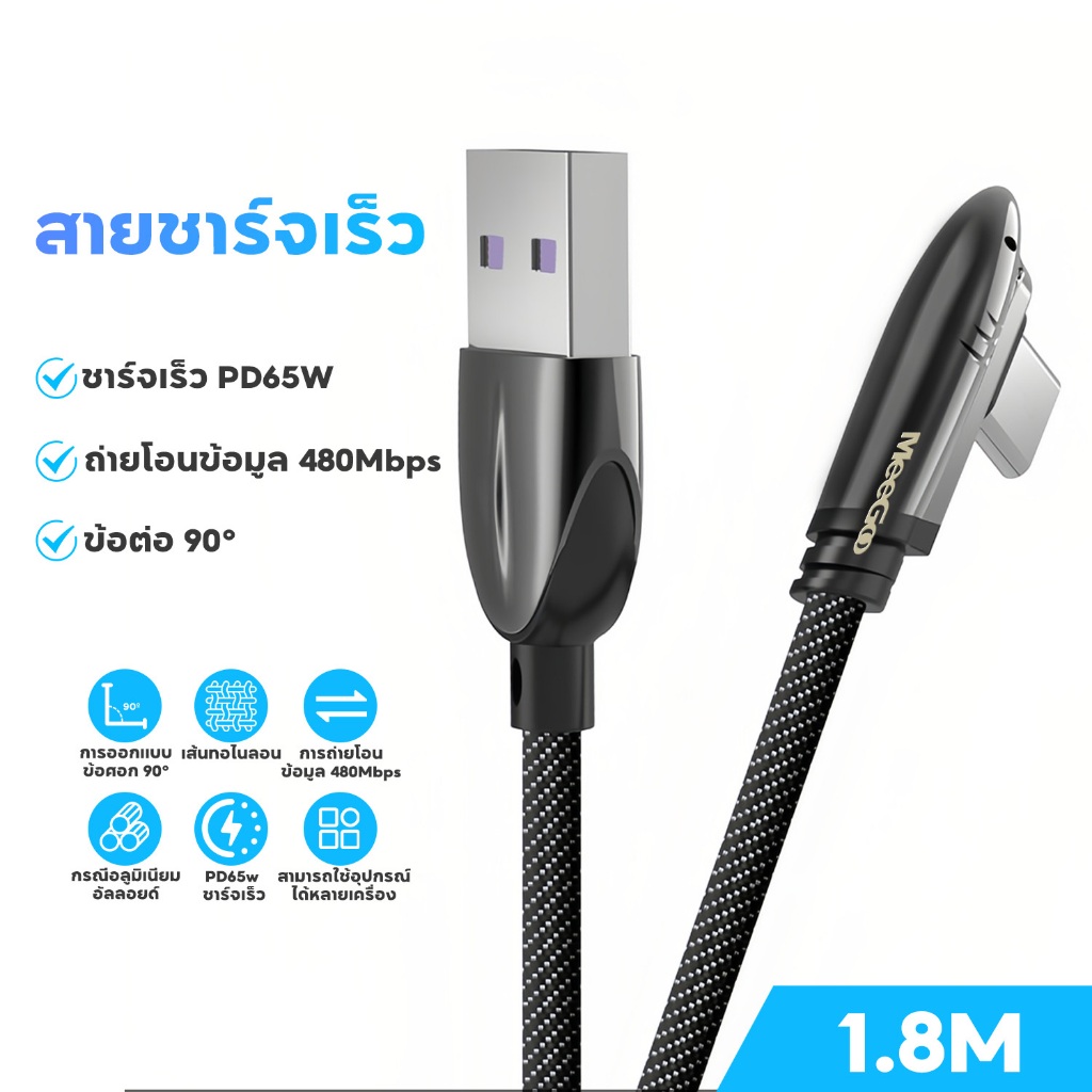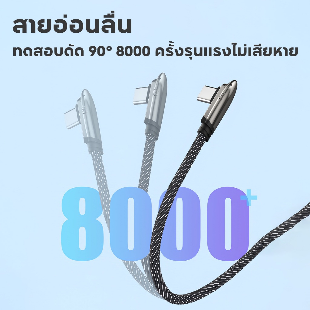 สายเคเบิลมุมขวา USB C ชาร์จเร็ว 6A Type C สำหรับการชาร์จที่รวดเร็ว สายชาร์จ USB A ถึง USB-C แบบถักไนลอนที่ทนทาน