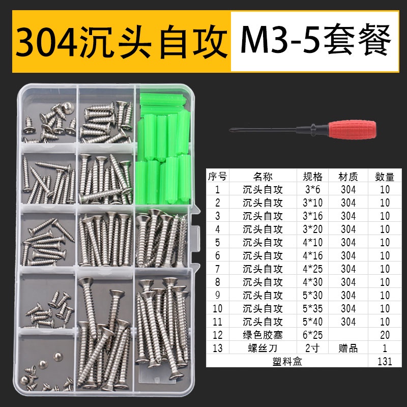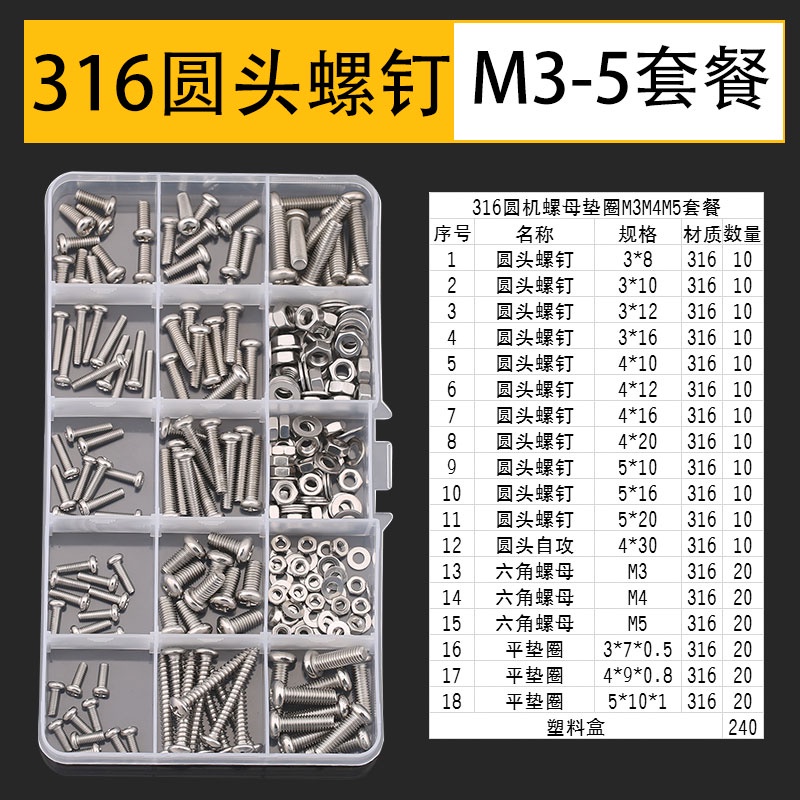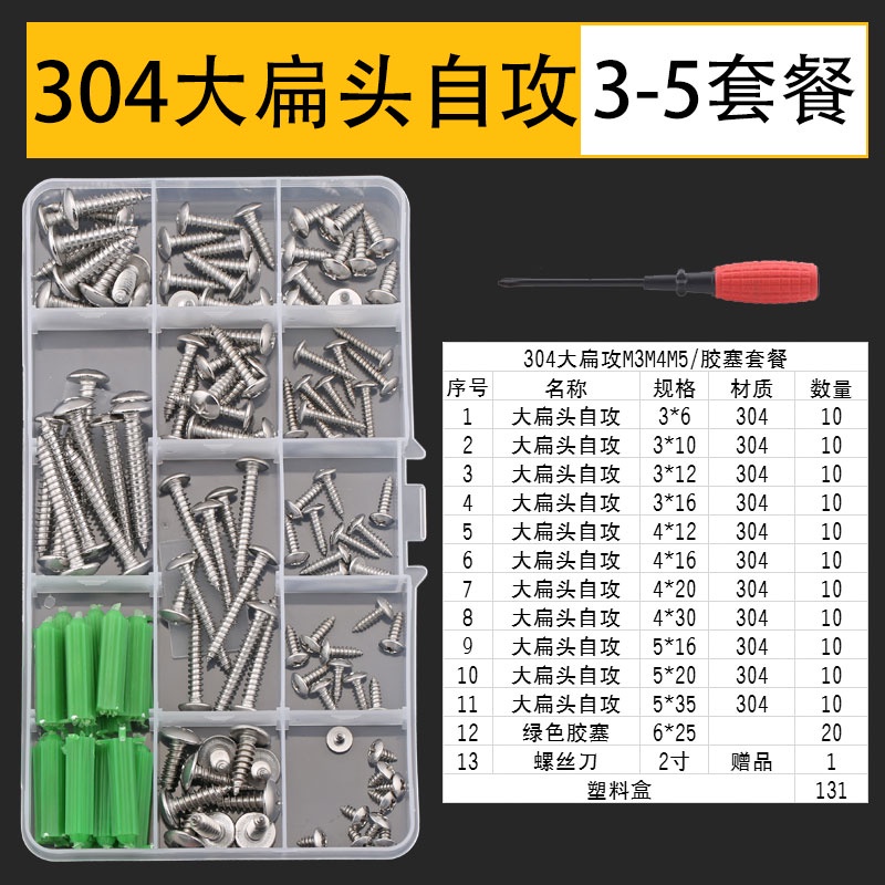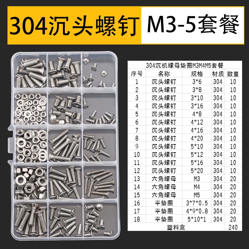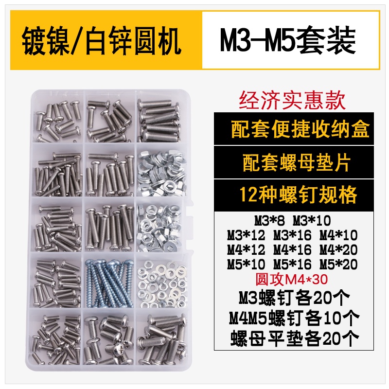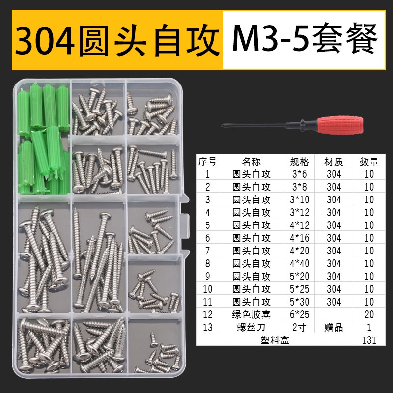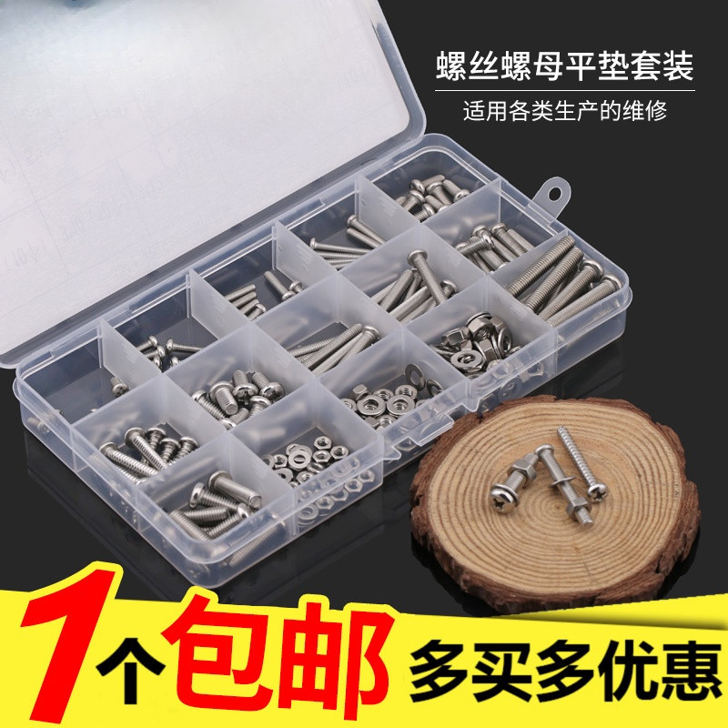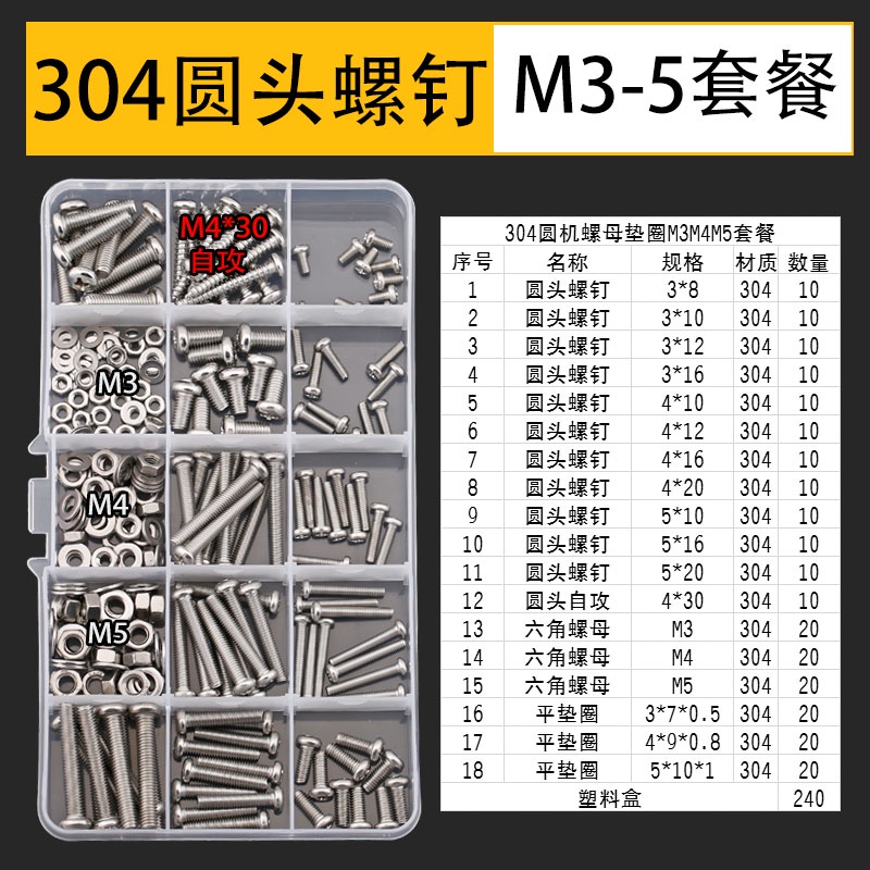 [JTZB] 304 ชุดน็อตสกรูสแตนเลสผสมชนิดบรรจุกล่องในครัวเรือนหัวแบนหัวกลมสกรูซ่อมแตะตัวเอง M3M4M5