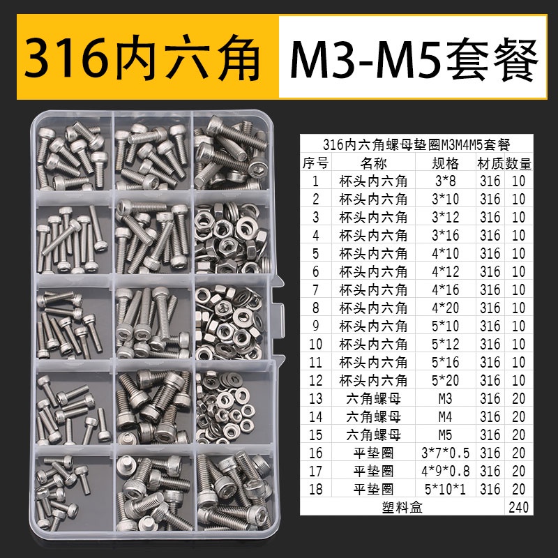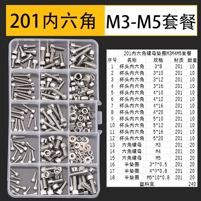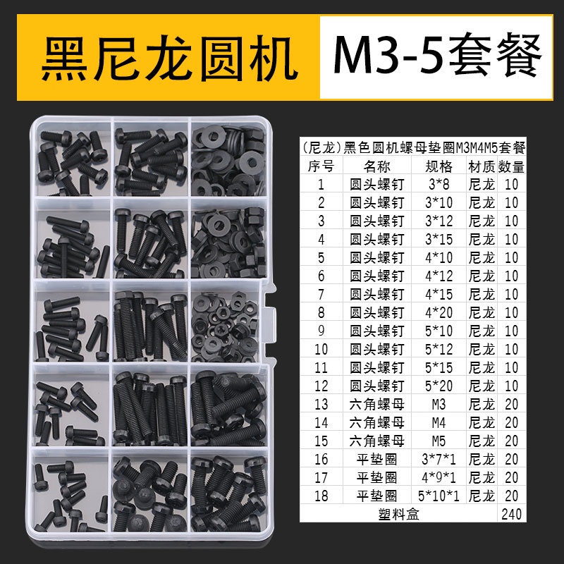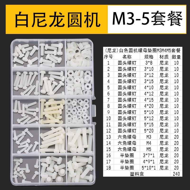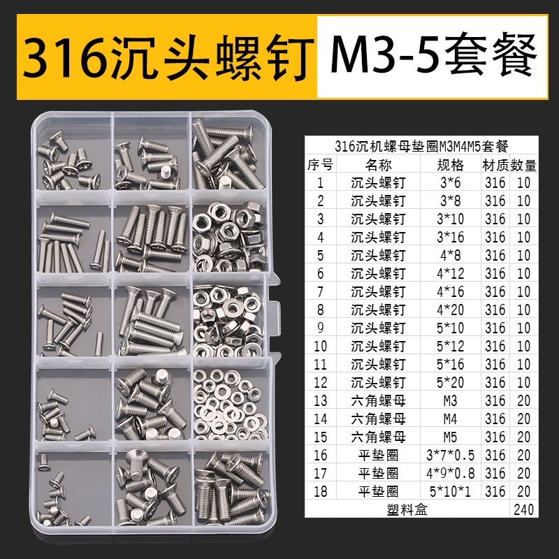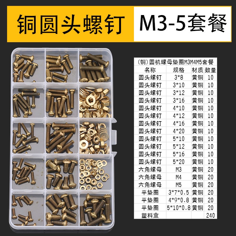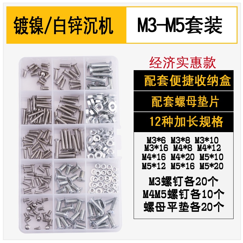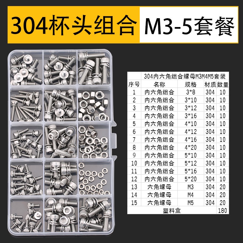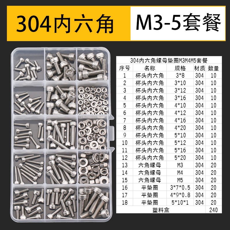 [JTZB] 304 ชุดน็อตสกรูสแตนเลสผสมชนิดบรรจุกล่องในครัวเรือนหัวแบนหัวกลมสกรูซ่อมแตะตัวเอง M3M4M5