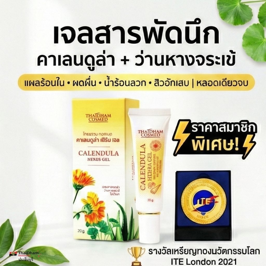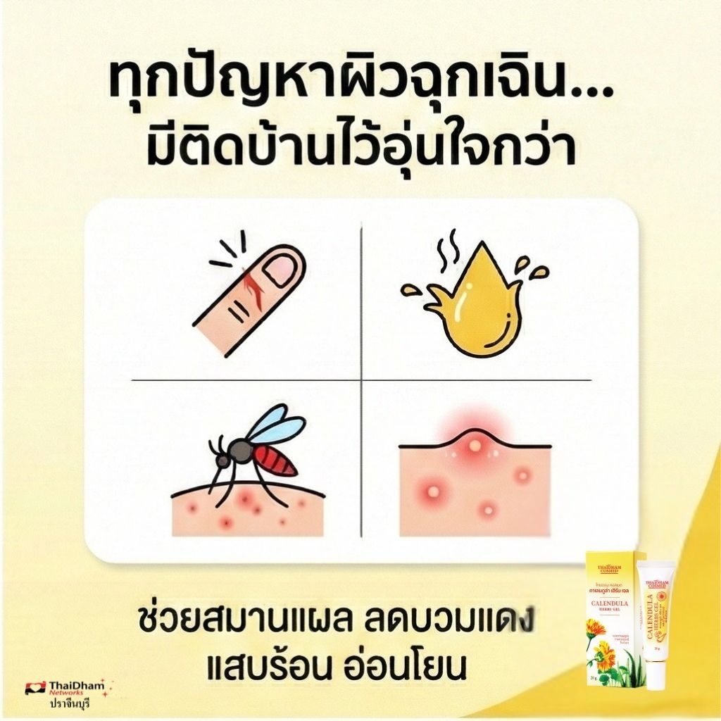 CalendulaHerbsGelเจลคาเลนดูล่าสารพัดนึกลดสิวแผลสดน้ำร้อนลวกผดผื่นการันตีรางวัลเหรียญทองโลก