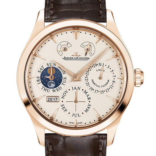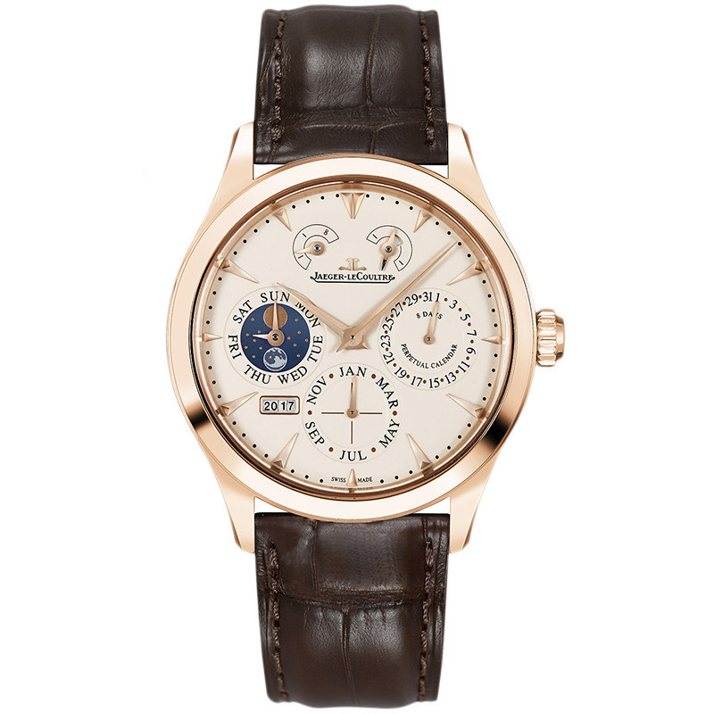 Jaeger & LeCoultre Moon Phase Master 18K Rose Gold Manual Mechanical Watch ชาย1612520ปฏิทินถาวร