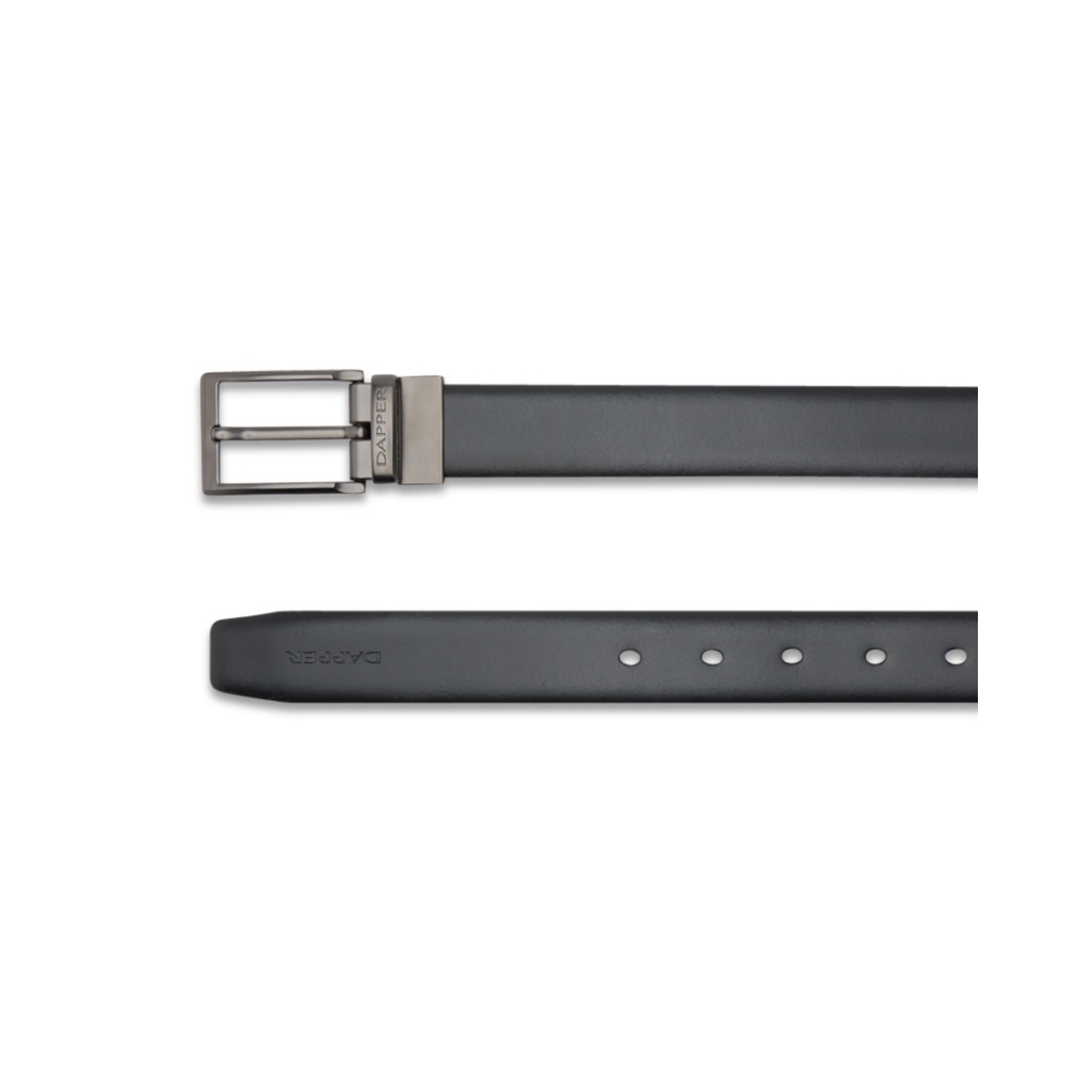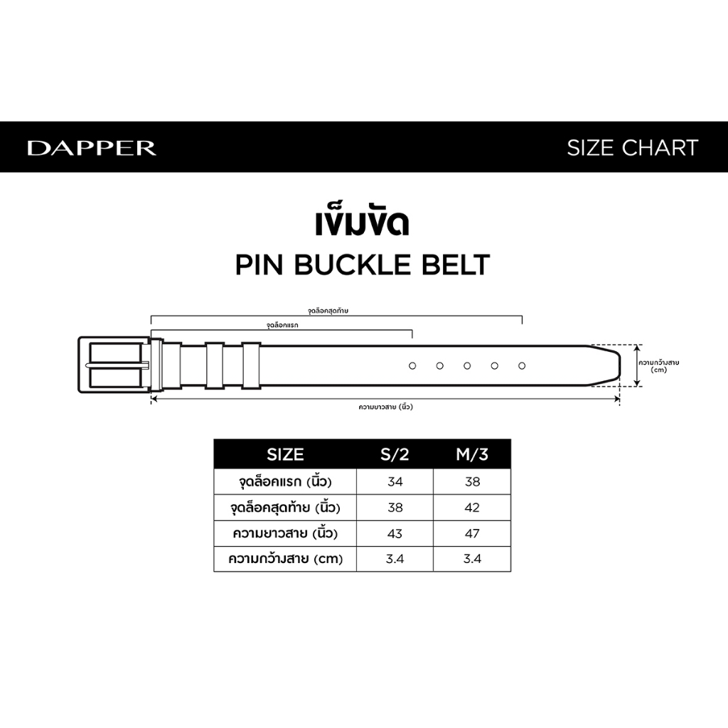 DAPPER เข็มขัดผู้ชาย หนังแท้ Modern Matte Pin Buckle ใส่ได้ 2 ด้าน สีดำ (BBC/BK/1281PN2)