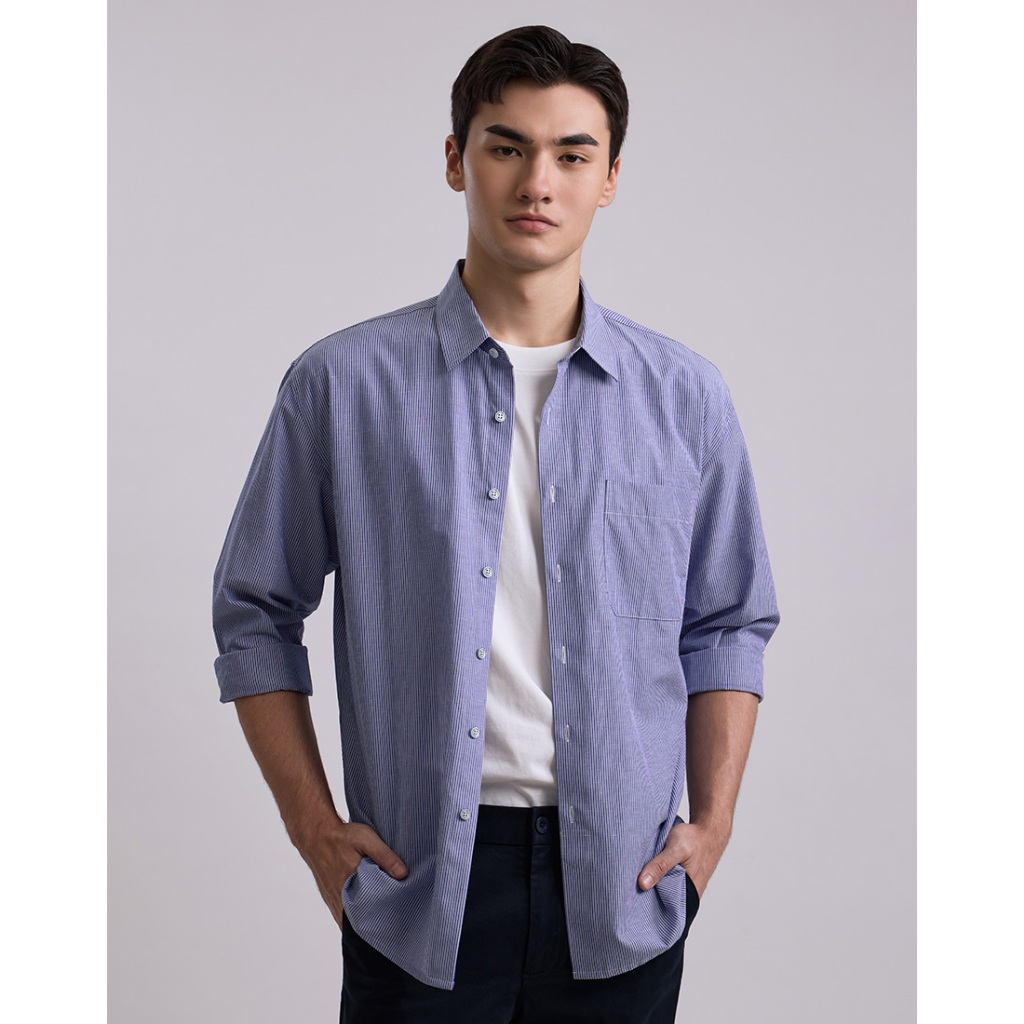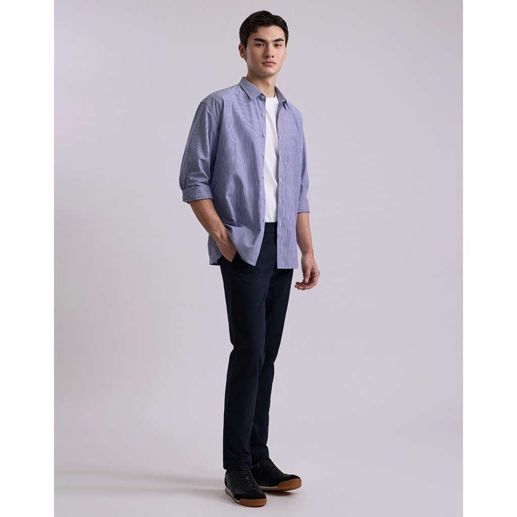 DAPPER เสื้อเชิ้ตแขนยาว Linen Blend Striped Shirt สีน้ำเงิน (BCL/NA/521TS)