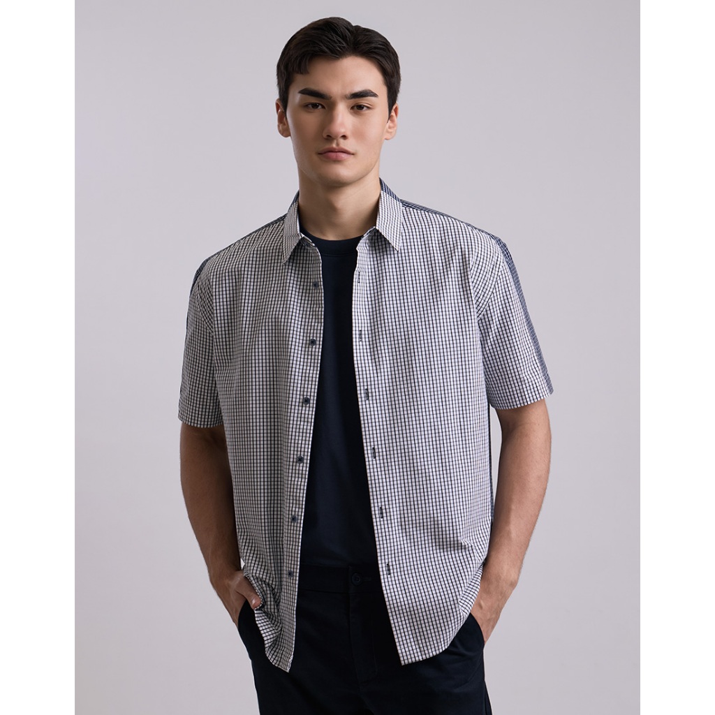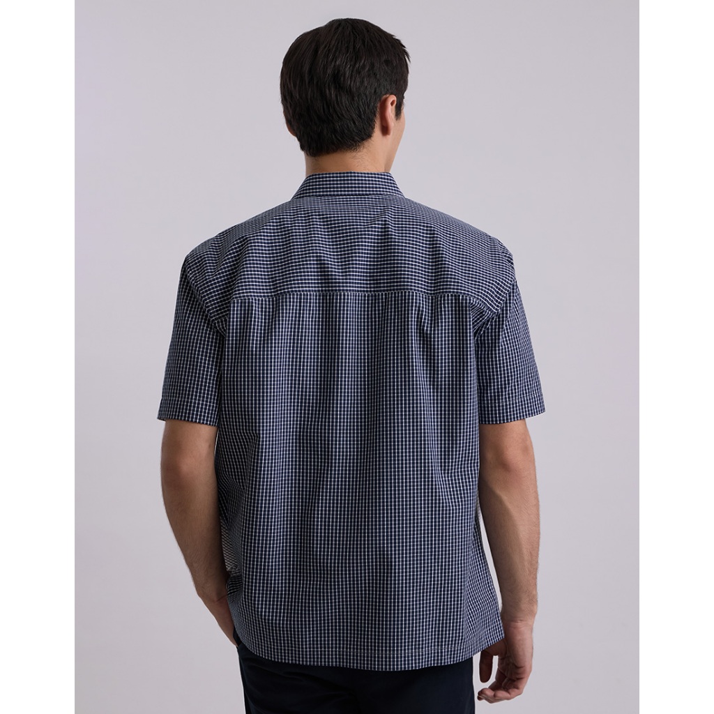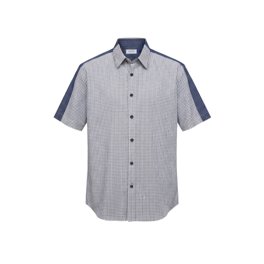 DAPPER เสื้อเชิ้ตแขนสั้น Contrast Check Print สีกรมท่า (BCS/NA/510TS)