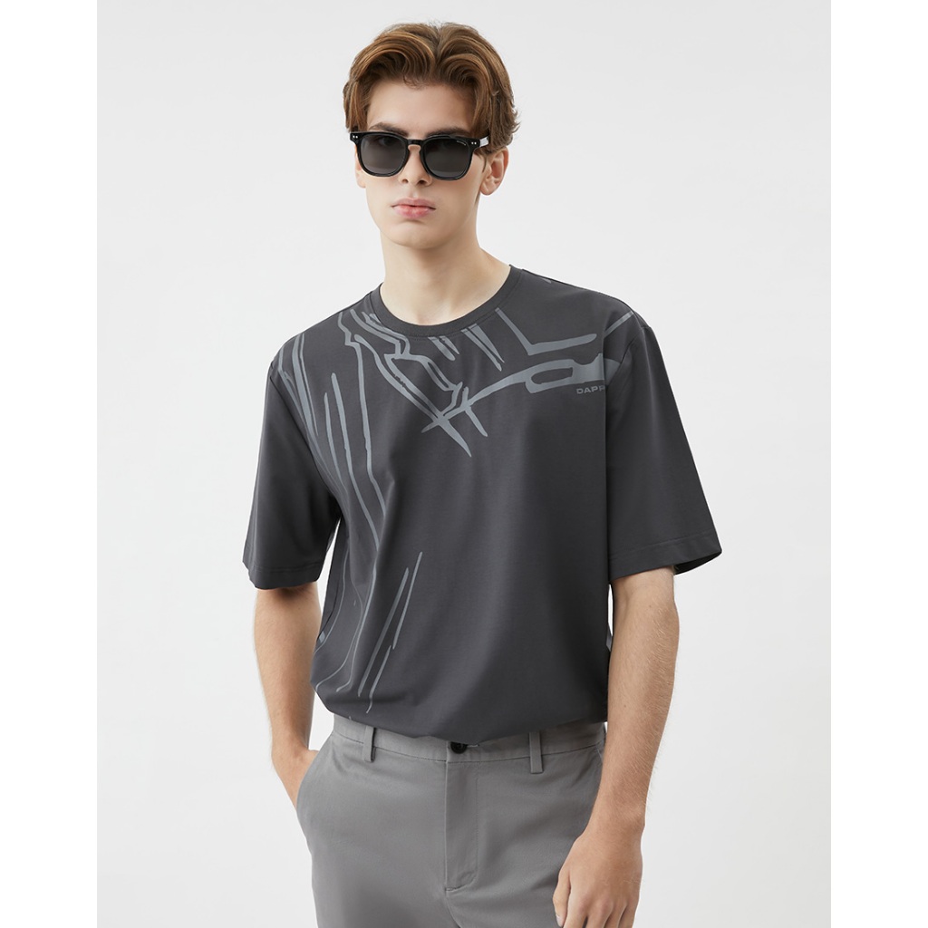 DAPPER เสื้อยืด Dynamic Stroke Print สีเทาเข้ม (KR/DG/815RS)