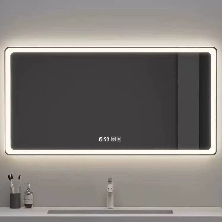 𝙎𝙢𝙖𝙧𝙩 𝙇𝙀𝘿 𝙈𝙞𝙧𝙧𝙤𝙧 กระจกห้องน้ำ LED อัจฉริยะพร้อมนาฬิกาและระบบไล่ฝ้า ขนาด60*80cm ดีไซน์มินิมอล เหมาะกับบ้าน Smart Home