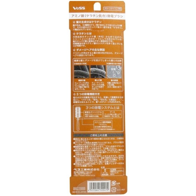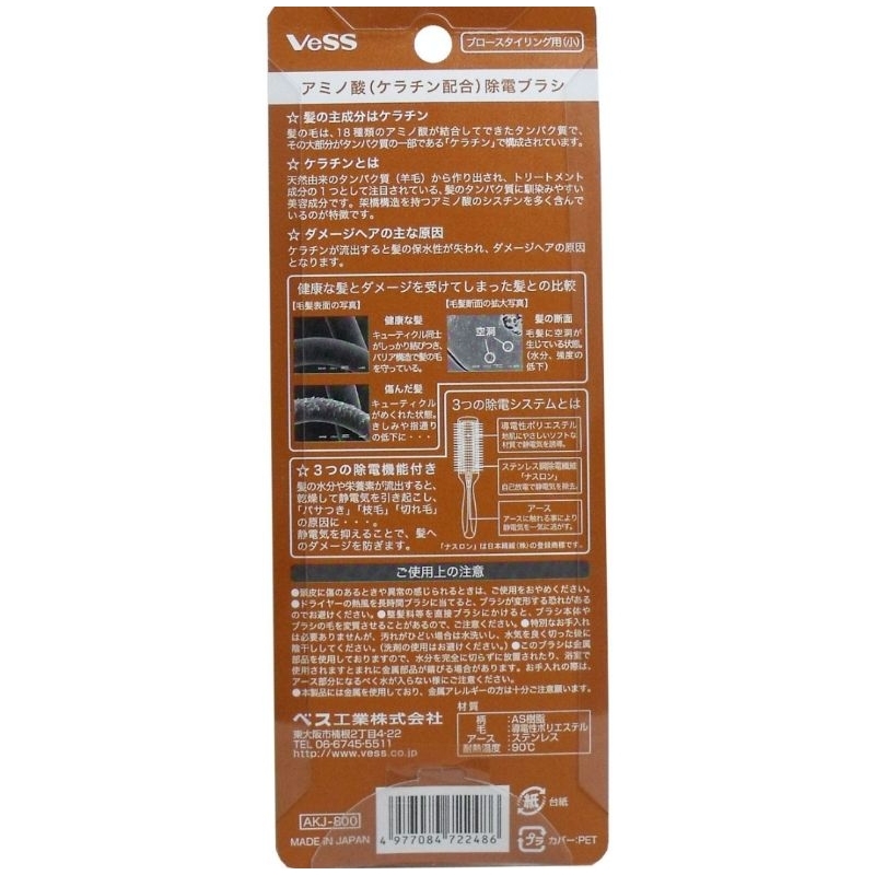(1ชิ้น เลือกขนาด) แปรงผม ญี่ปุ่น ลดไฟฟ้าสถิตย์ Amino acid (with keratin)vess static elimination brush for blow styling