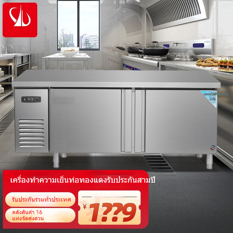 โต๊ะทำความเย็นแบบแช่เย็นห้องครัวอุณหภูมิคู่เชิงพาณิชย์ร้านชานมตู้เก็บของแช่แข็งแนวนอนตู้แช่แข็งตู้แช่แข็งจัดส่งฟรี