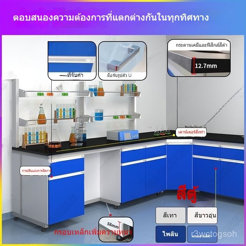 ห้องปฏิบัติการเหล็กและไม้ โต๊ะทำงาน โต๊ะทำงานในห้องปฏิบัติการ โต๊ะห้องปฏิบัติการเคมี แท่นทดสอบ ตู้ระบายอากาศ OYRK