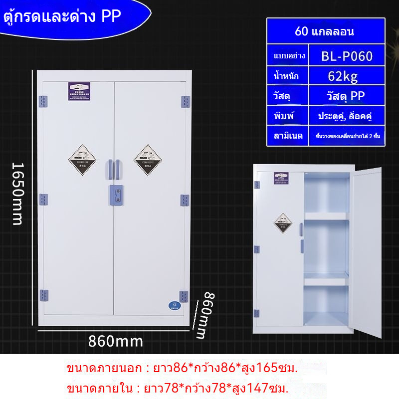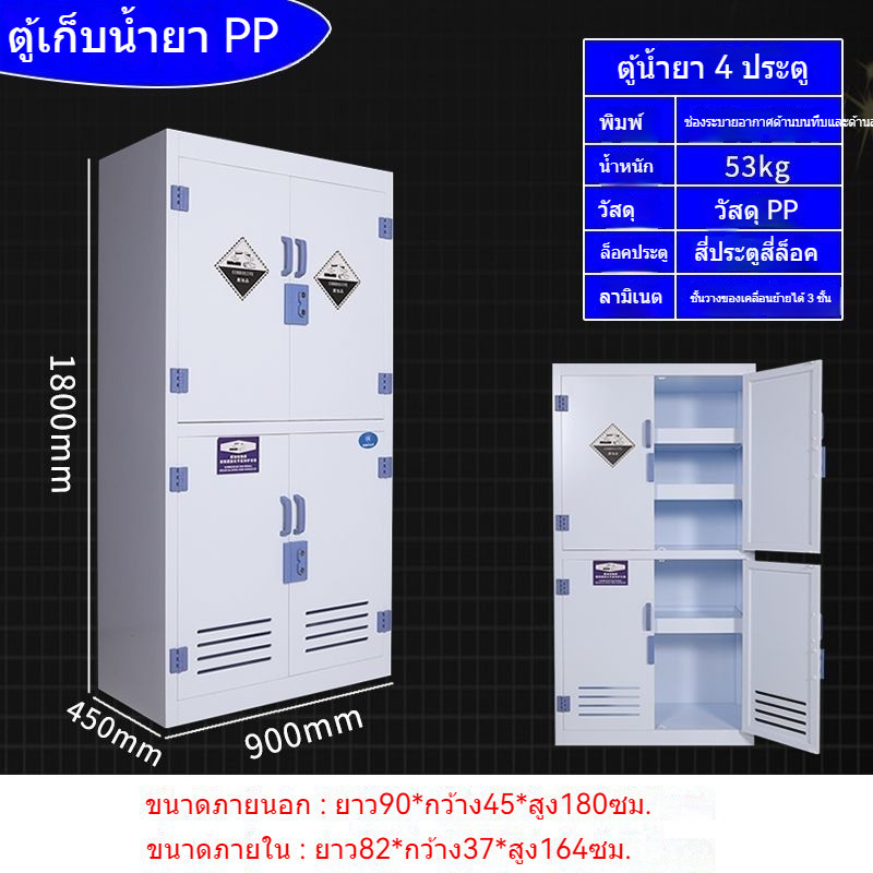 ห้องปฏิบัติการ ภาชนะ PP สำหรับกรดและด่าง แอลคาไลที่แข็งแกร่ง ที่เก็บสารเคมี ล็อคสองชั้นสำหรับสองคน ตู้เก็บสารเคมี XS2