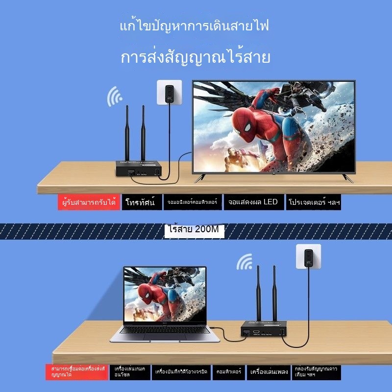 ✨【อัปเกรด】✨ ตัวส่งสัญญาณ HDMI ไร้สาย สำหรับเชื่อมต่อ PC กับทีวี และโปรเจ็กเตอร์ HD แบบติดผนัง