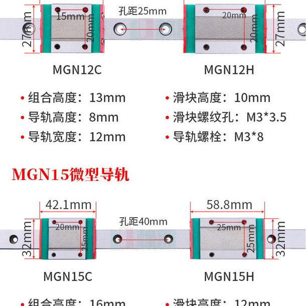 ไต้หวันเลื่อนเงิน hgh25 CA egh hgw 15 20 35 45 CC MG รางเลื่อนเชิงเส้น
