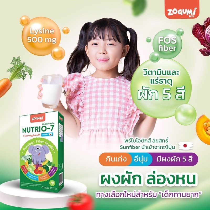Nutrio-7 พรีไบโอติกส์ ผงผักล่องหน ไฟเบอร์ใยอาหารสำหรับเด็กท้องผูก เสริมภูมิคุ้มกัน ช่วยให้เจริญอาหาร