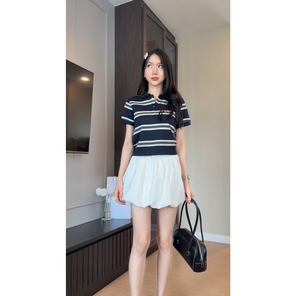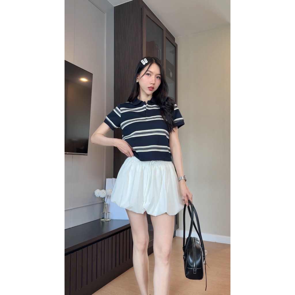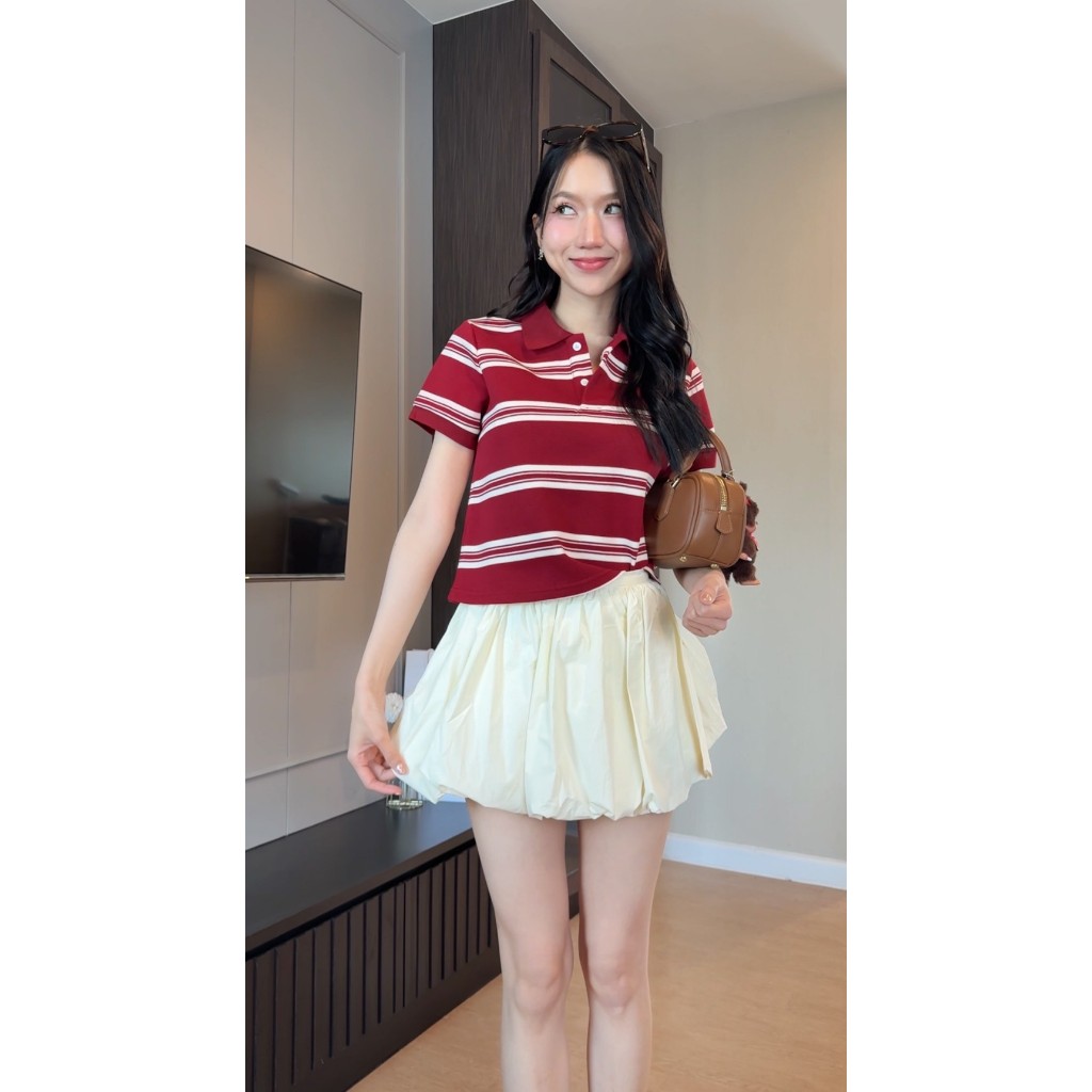 BD25-073 เสื้อโปโลแดงลายทาง