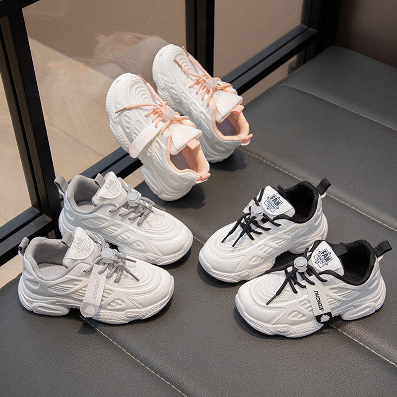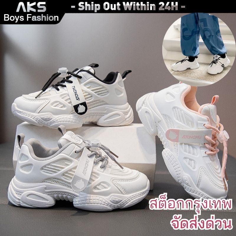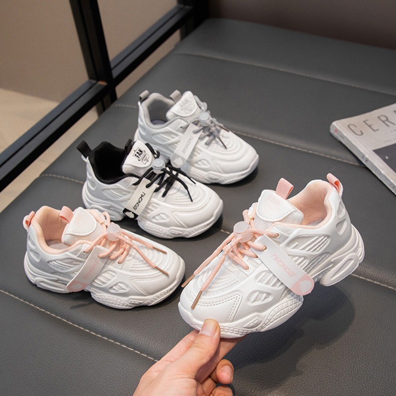 ส่งจากกรุงเทพฯ| รองเท้ากีฬาที่นุ่มและสะดวกสบายสำหรับเด็กอายุ 6-12 ปี รองเท้ากีฬาเด็กสีเทาและสีชมพู