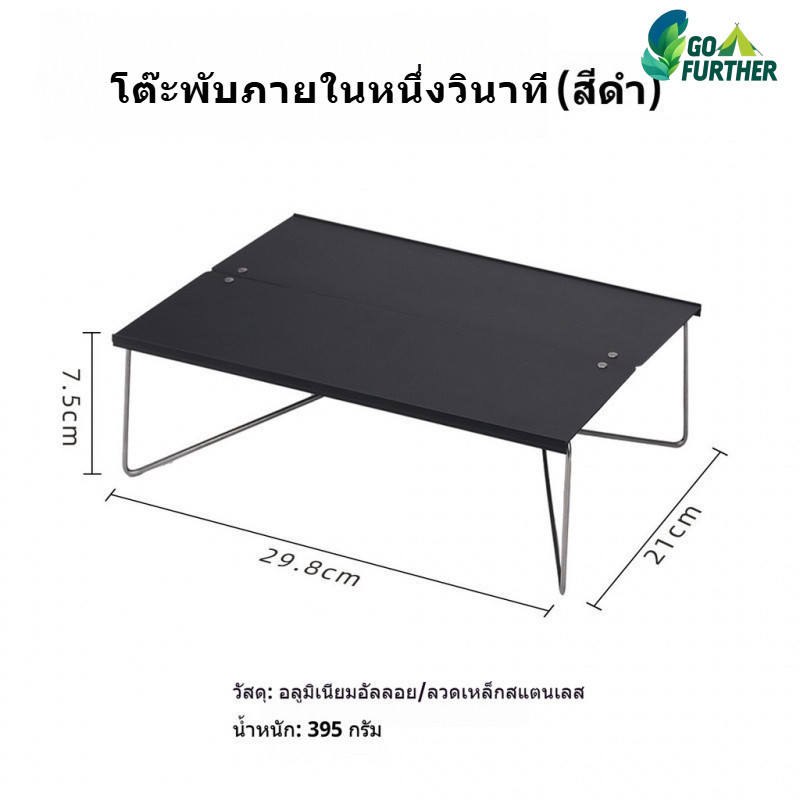 โต๊ะพับได้ อลูมิเนียม น้ำหนักเบา 0.4kg รับน้ำหนัก 3kg Folding Camping table Aluminum เปิดใน 1 วินาที สำหรับปิกนิก ชายหาด ปิ้งย่าง และท่องเที่ยว ส่งฟรี #ของตั้งแคมป์ฮิต
