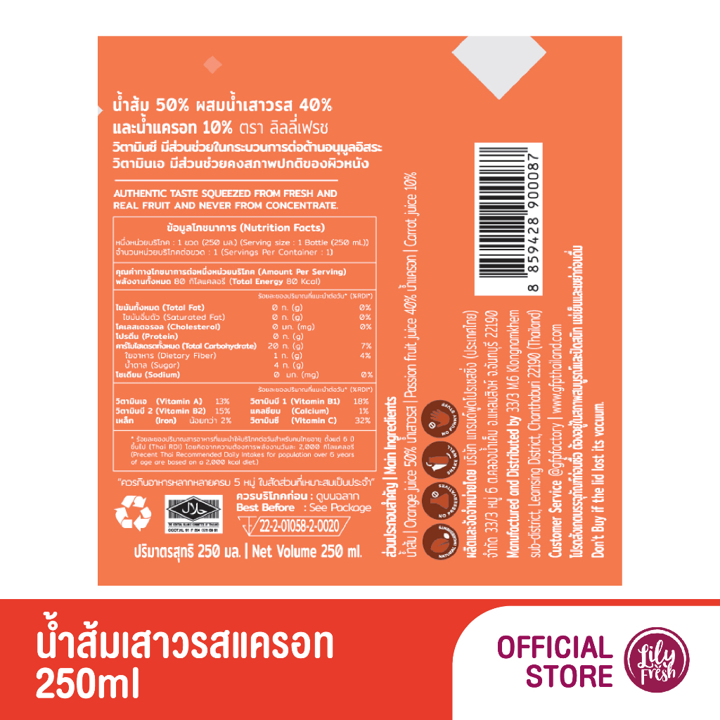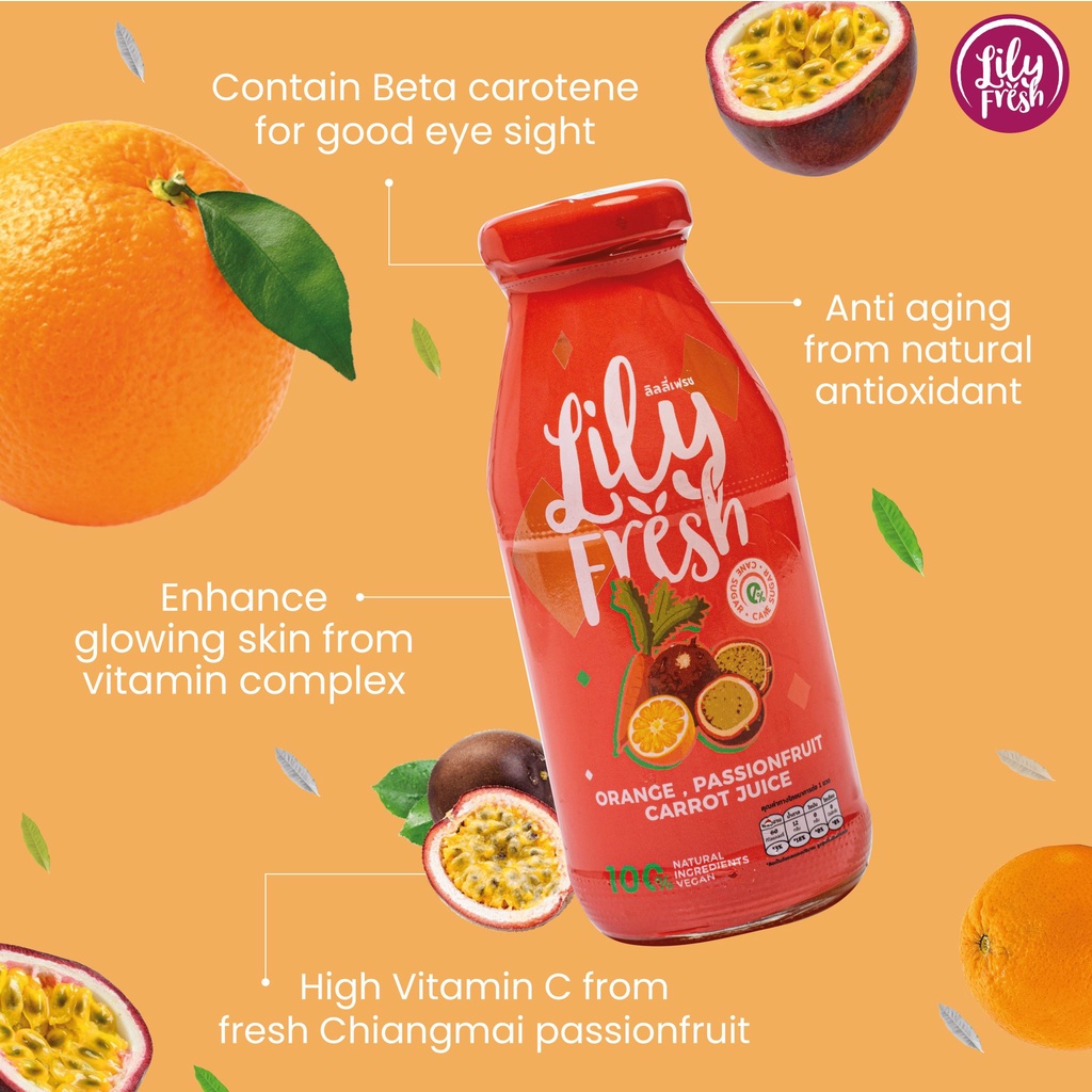 Lily Fresh เซ็ตสุดคุ้ม น้ำผลไม้สกัดเข้มเข้น 100% รวม 4 รสชาติ ปริมาณ 250 มล. (เซ็ตรวม 12 ขวด)