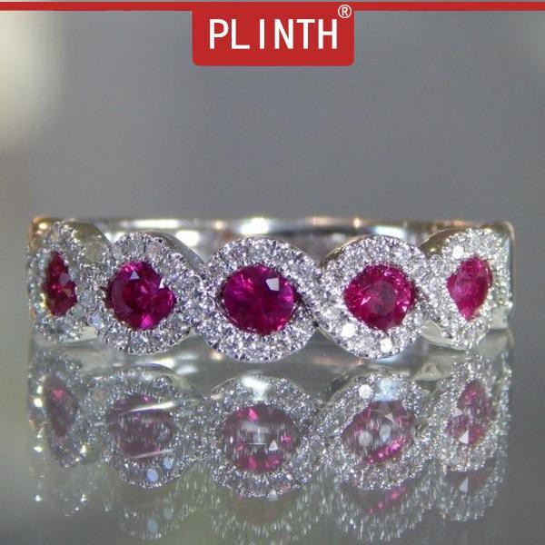 PLINTH แหวนเงินแท้ 925 ทับทิมหมั้นเพชรแถบมรกต325