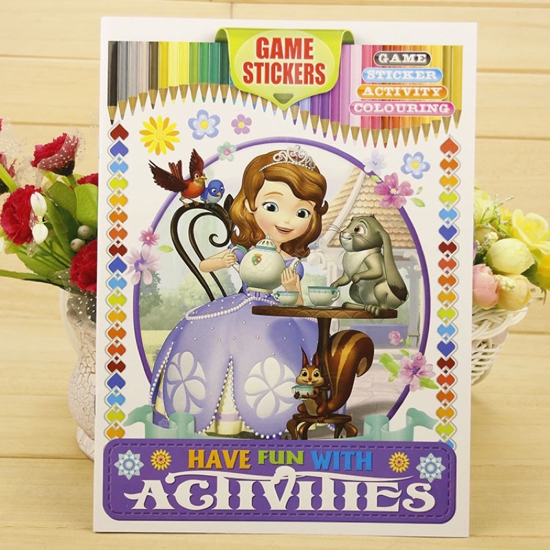 สมุดภาพระบายสี+สติ๊กเกอร์ ขนาด A4 มาพร้อมสติ๊กเกอร์การ์ตูน ACB ตัวเลข เสริมสร้างจินตนาการให้เด็กๆ