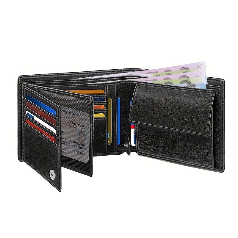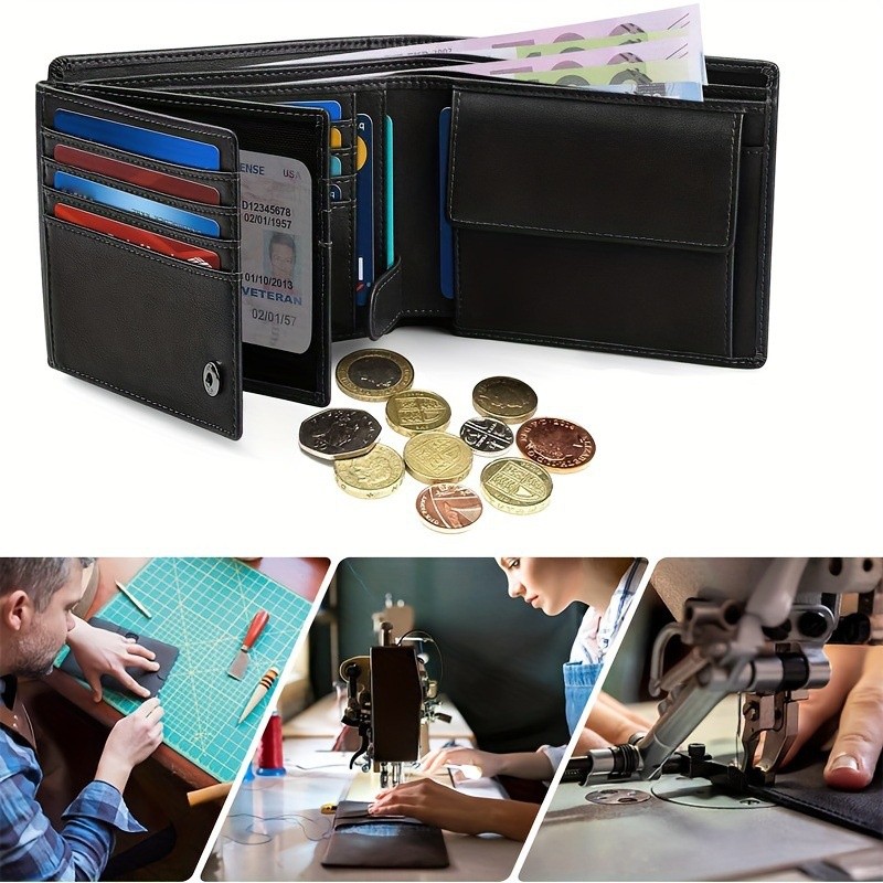 กระเป๋าสตางค์ผู้ชาย พับสองทบ มีหลายช่อง บัตรรูดกันขโมย RFID ผ้าป้องกันแม่เหล็ก ที่ใส่บัตรเครดิต เก๋ไก๋ พร้อมช่องใส่เหรียญ