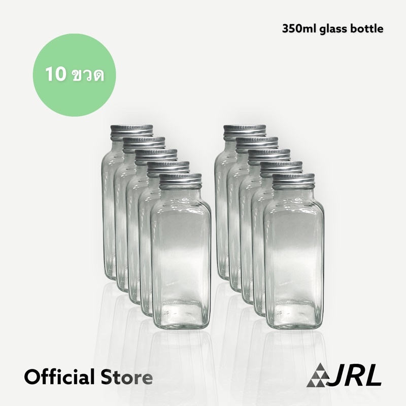 (10 ขวด) 350ml ขวดแก้วทรงเหลี่ยม (ห่อหนามาก!) พร้อมฝาอลูมิเนียมสีเงิน สำหรับใส่ชา กาแฟ