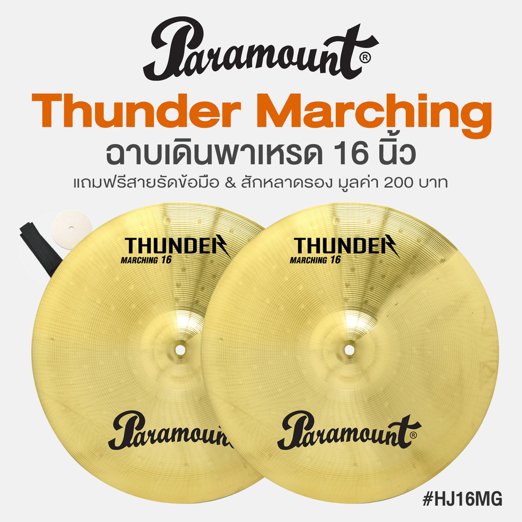 Paramount Thunder Marching Cymbal แฉเดินพาเหรด ฉาบเดินพาเหรด ขนาด 12/14/16/18 นิ้ว วัสดุ Electroplate Brass