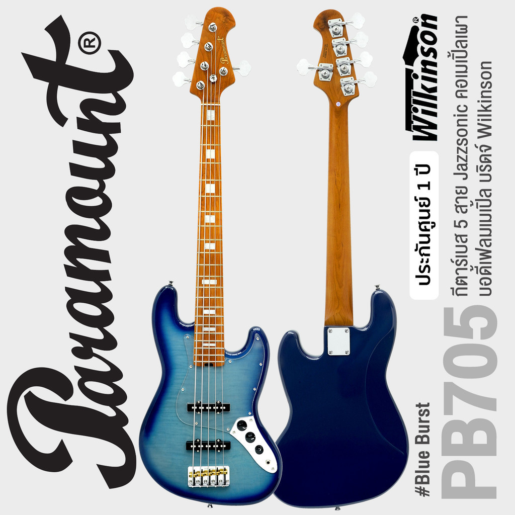 +เซ็ตอัพฟรี+ Paramount PB705 Jazzsonic Bass กีต้าร์เบส 5 สาย 21 เฟรต ทรง Jazz บอดี้ไม้มะฮอกกานี คอเมเปิ้ลเผา ลายเฟลมเมเ