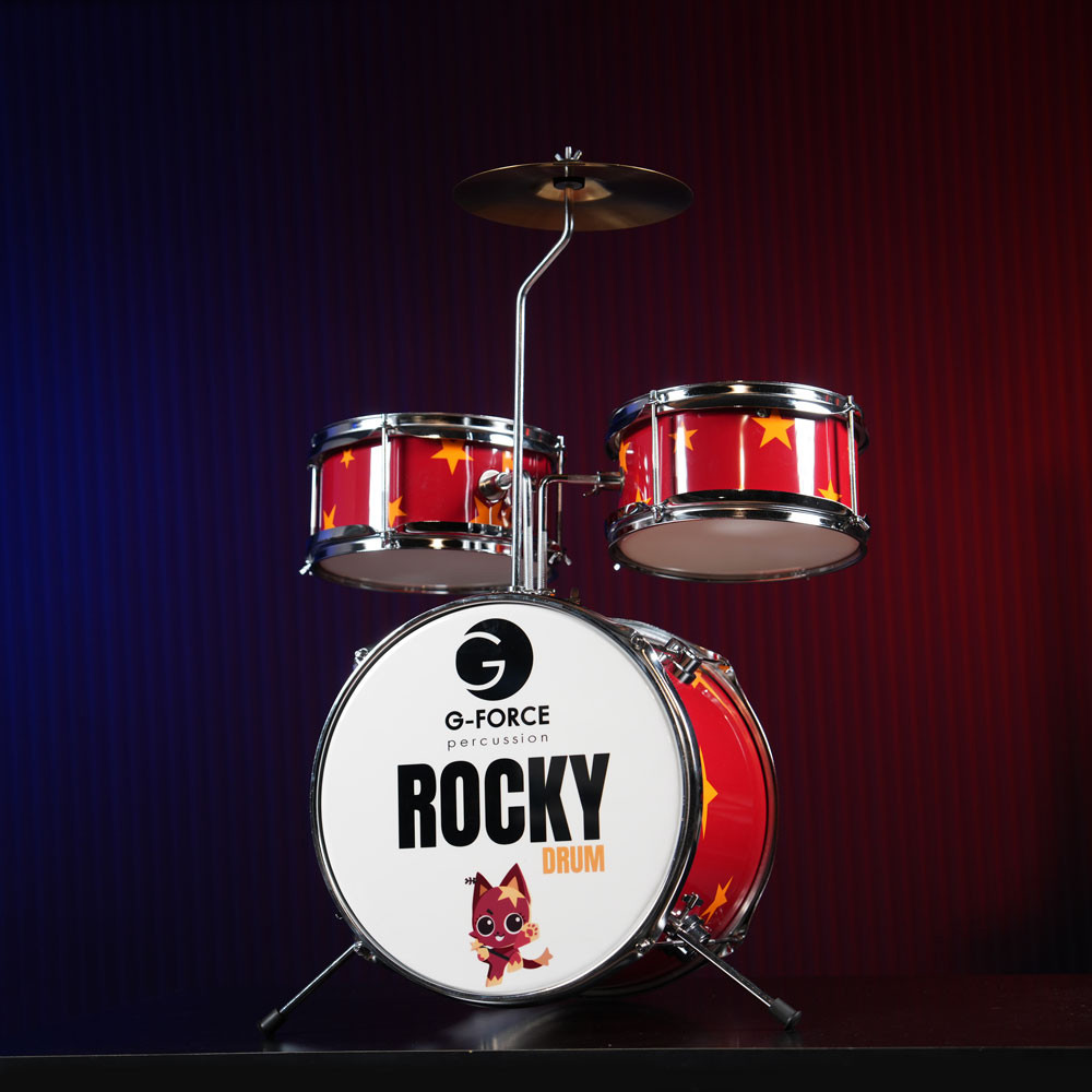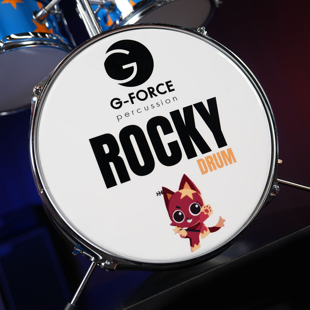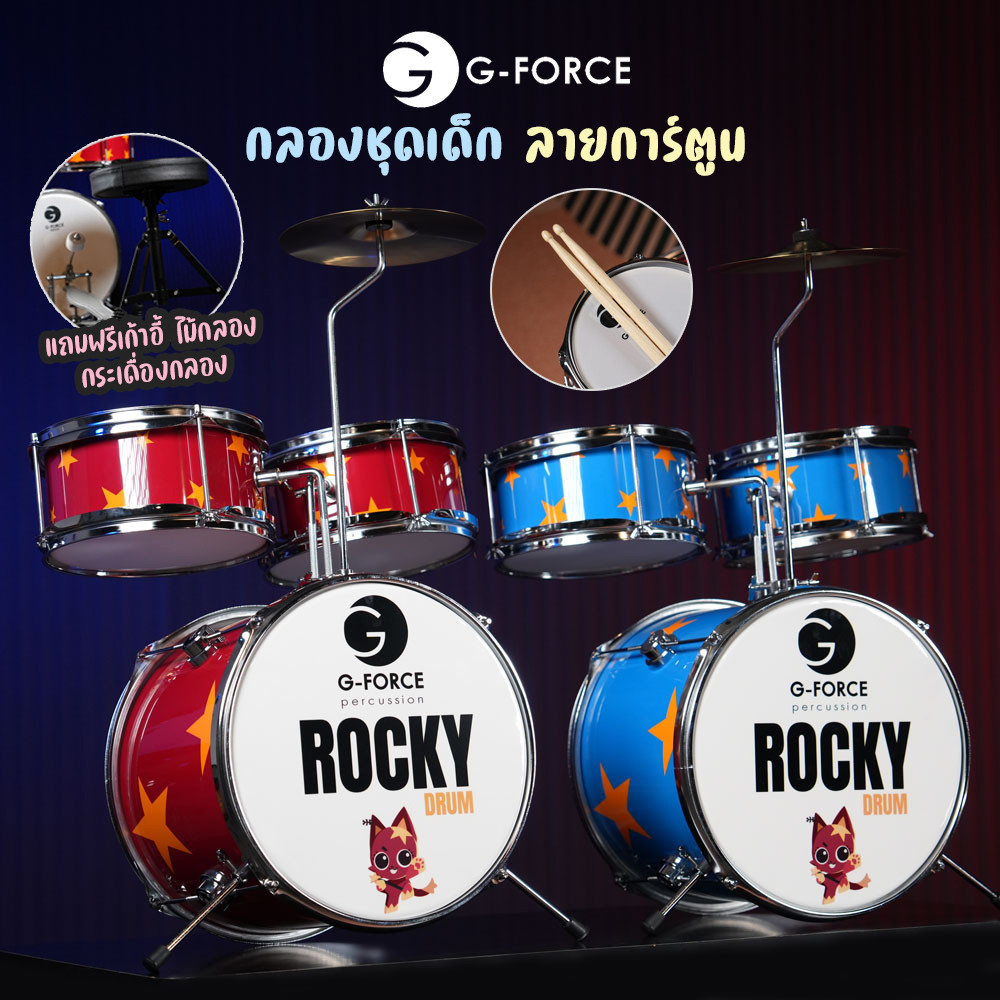 กลองเด็ก กลองชุดเด็ก G-Force Rocky Kid Drum กลองชุด 3 ใบ ลายการ์ตูน + แถมฟรีเก้าอี้ & กระเดื่อง & ไม้กลอง