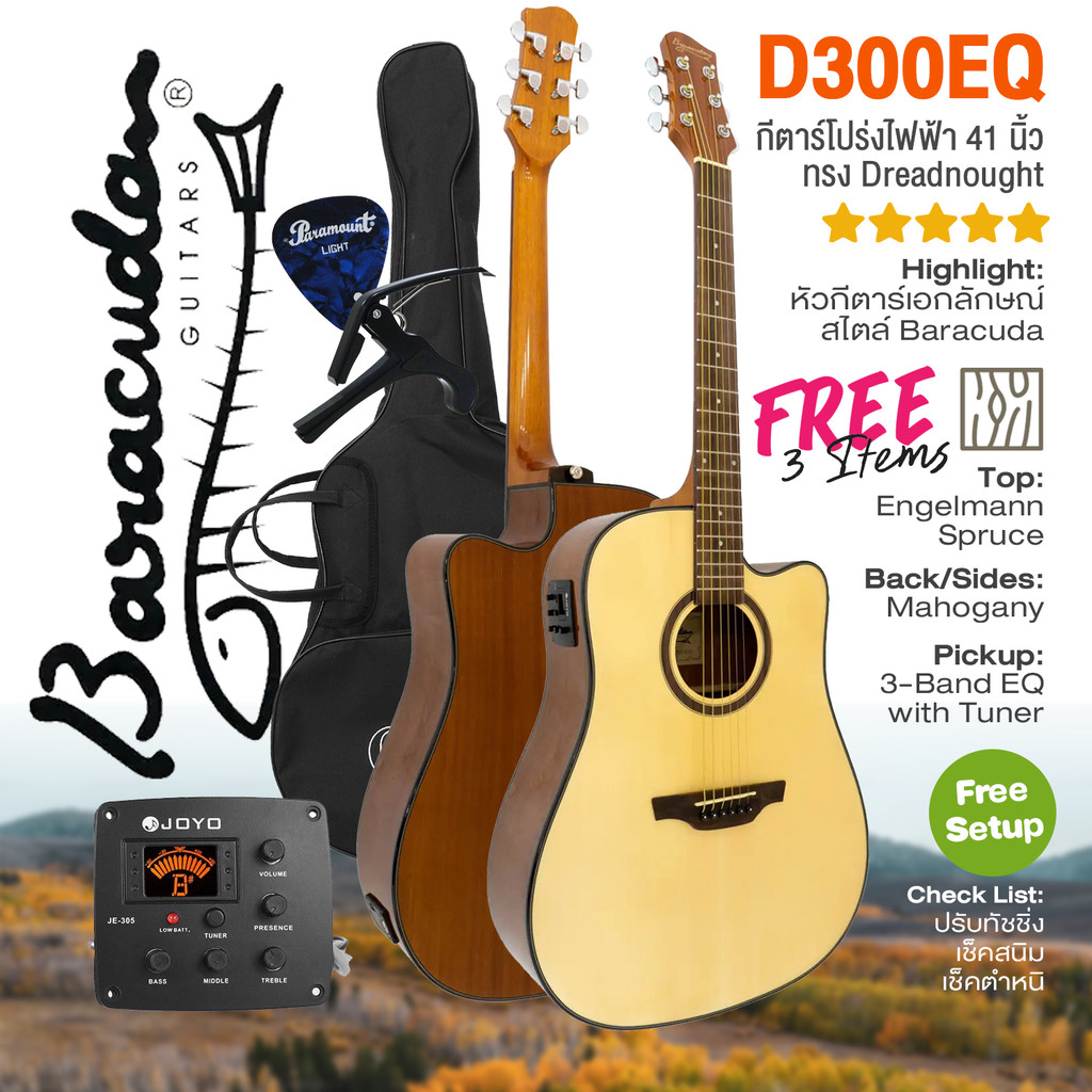 ⭐เซ็ตอัพฟรี⭐ กีต้าร์โปร่งไฟฟ้า 41 นิ้ว Baracuda D-300EQ Dreadnought Acoustic Electric Guitar + ของแถม 3 รายการ