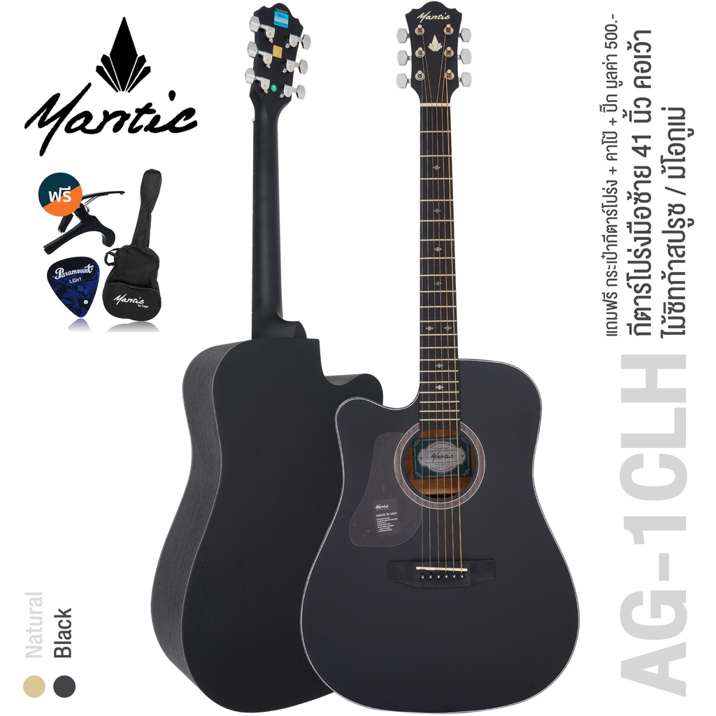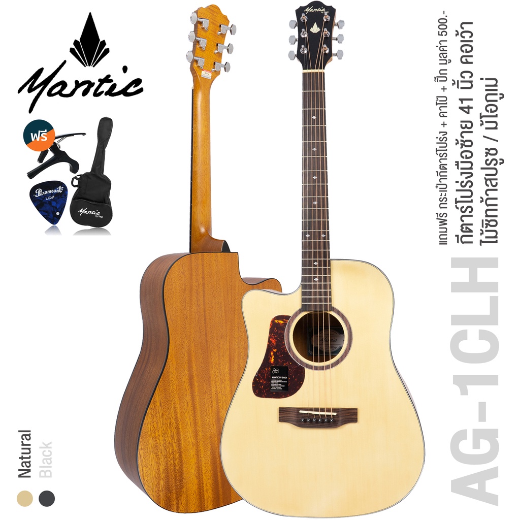 Mantic AG-1CLH กีตาร์โปร่งมือซ้าย 41 นิ้ว ทรง Dreadnought คอเว้า ไม้ซิทก้าสปรูซ/ไม้โอกูเม่ ( Left Handed Guitar ) + แถมฟ