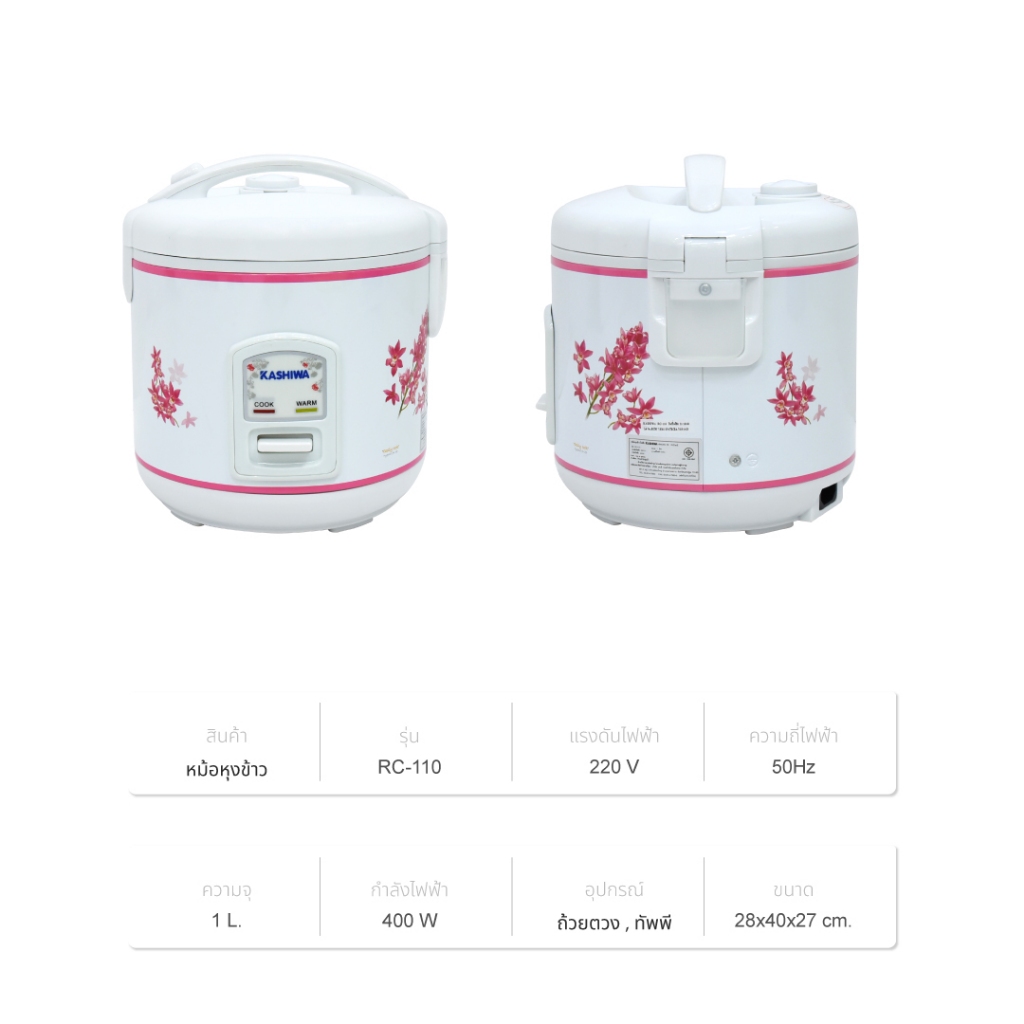 Kashiwa หม้อหุงข้าว 1 ลิตร รุ่น RC-110 หม้อหุง หม้อข้าว หุงข้าว