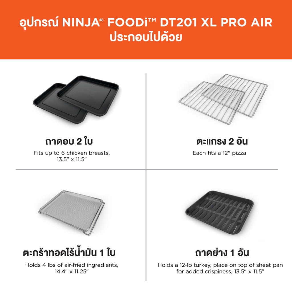 Ninja Foodi เตาอบไฟฟ้า ลมร้อน อเนกประสงค์ 10 ฟังก์ชั่น XL Air Fryer Oven DT200