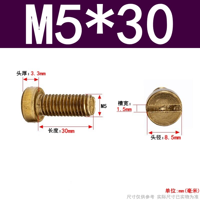 [MX] สกรูสล็อตแบนทองเหลือง M2.5-M10 GB65 ทองเหลืองมาตรฐานแห่งชาติแบน Slotted สกรูหัวทรงกระบอกทองแดงสกรูแบน