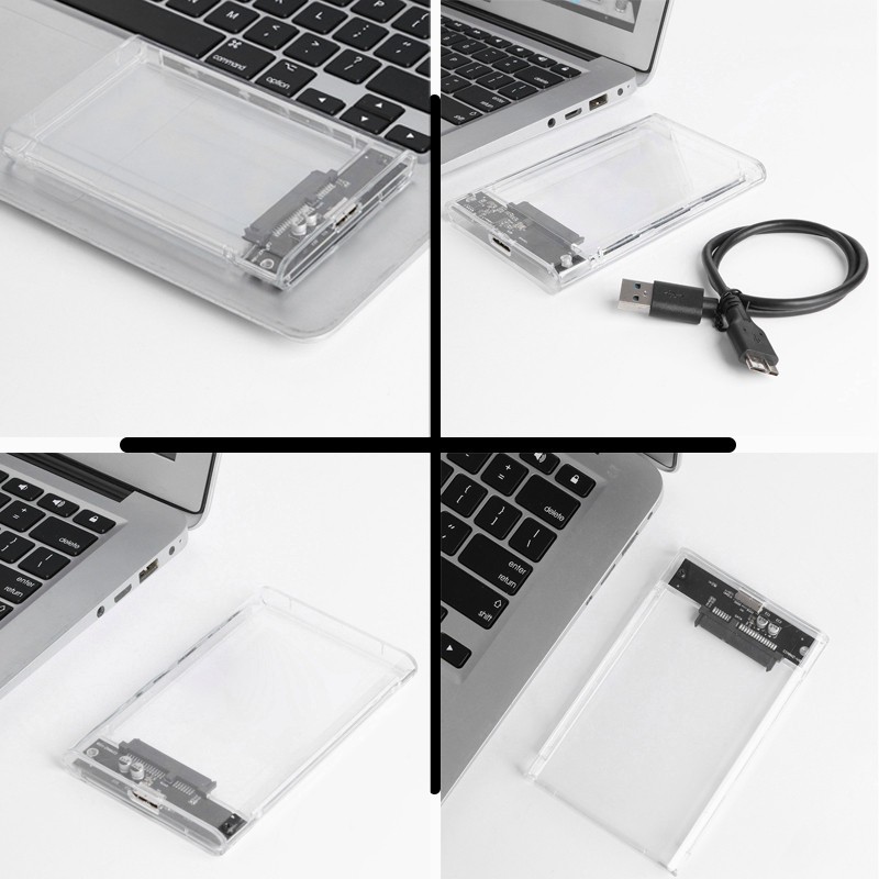 กล่องใส่ SSD 2.5 นิ้ว พร้อมสาย USB-C โปร่งใส แปลง SATA เป็น USB 3.0 สำหรับคอมพิวเตอร์และโทรศัพท์ - พกพาง่าย