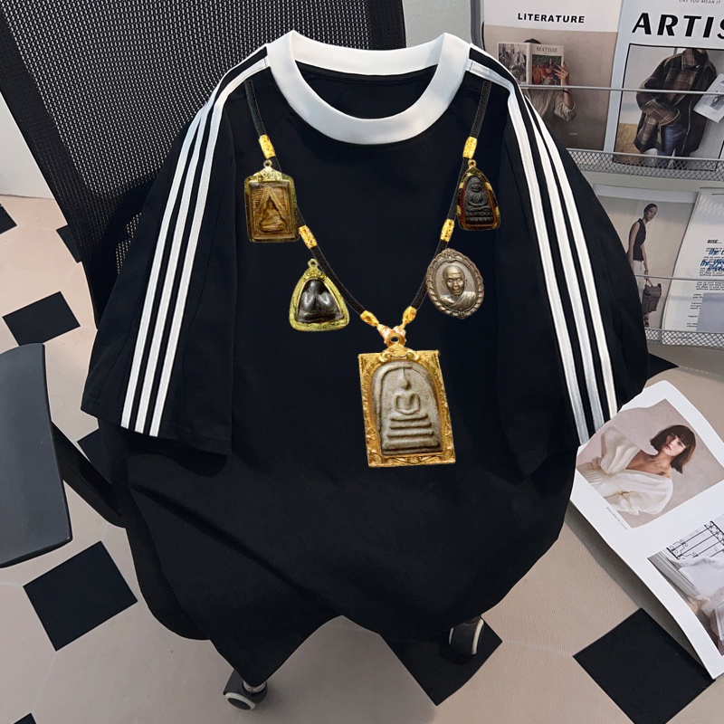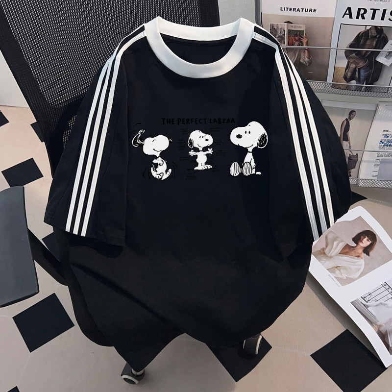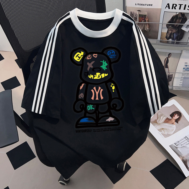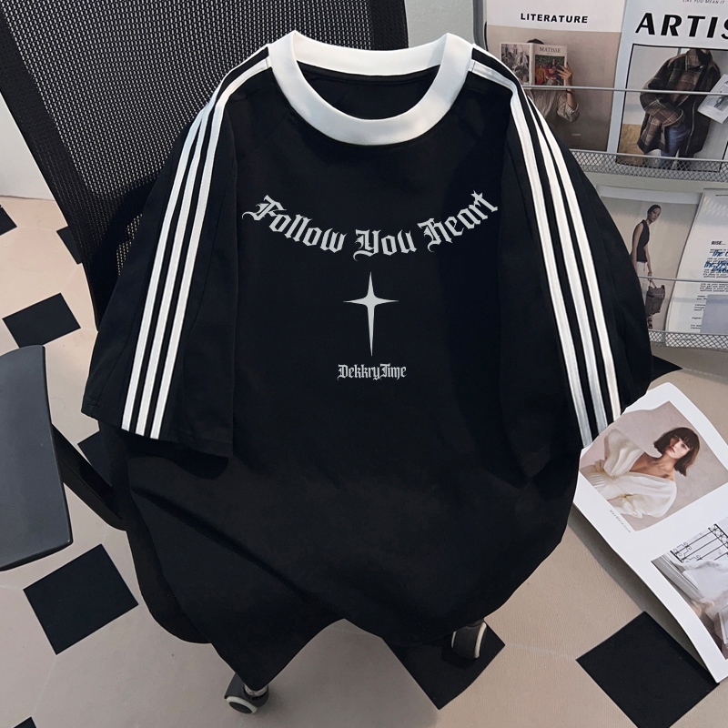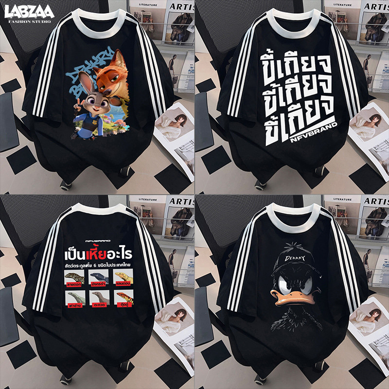 LABZAA ลำลองแมทช์ลุคง่าย⚡เสื้อยืดทรงหลวม ระบายอากาศ ลวดลายแฟชั่น โอเวอร์ไซส์ ผ้าหนายับยากรีดง่าย ผ้าฝ้าย YG0