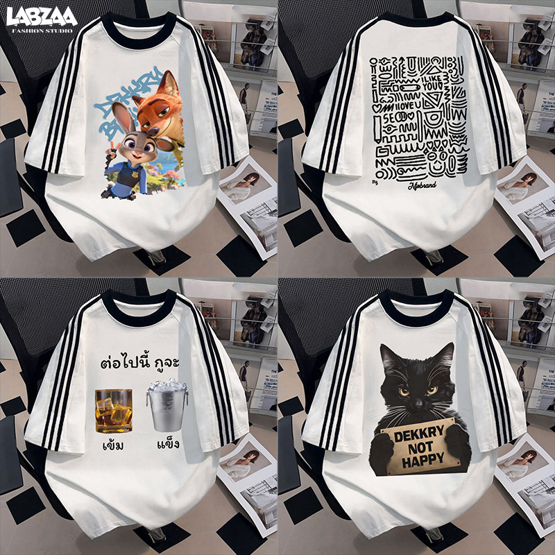 LABZAA วินเทจฟอกน้ำ🔥เสื้อยืดแขนสั้นคอกลม ผ้าหนายับยากรีดง่าย ลวดลายแฟชั่น ระบายอากาศ ผ้าฝ้าย YG0